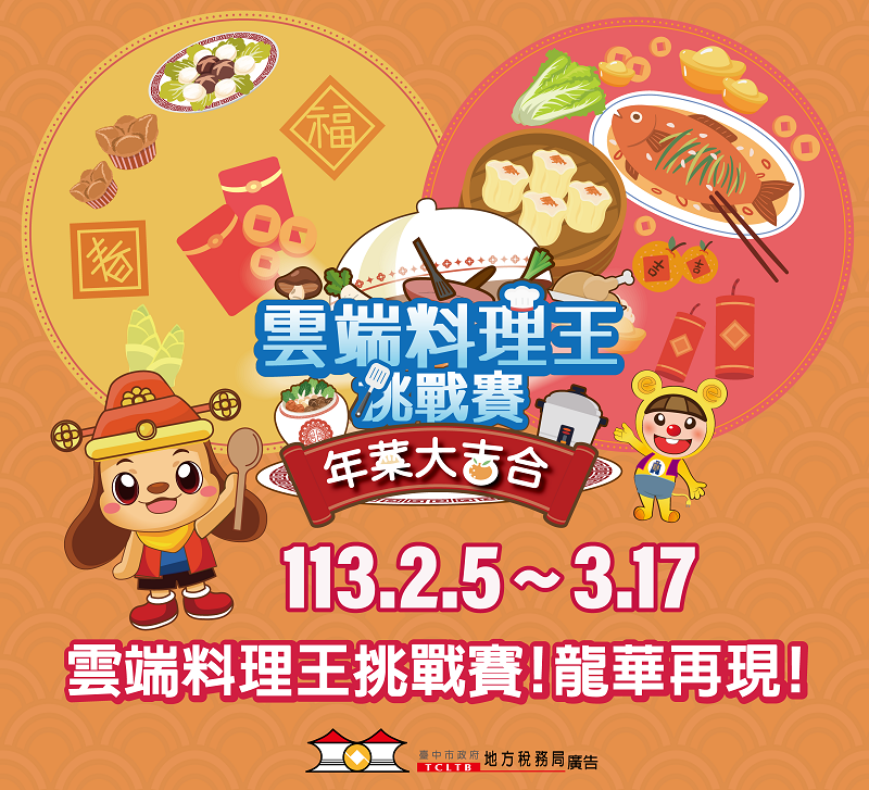 新的一年來臨,為迎接新春佳節,台中市政府地方稅務局攜手財政部中區國稅局台中分局,即日起至3月17日舉辦「雲端料理王挑戰賽」第二回「年菜大吉合」網路租稅宣導活動,讓民眾在享受烹飪遊戲中學習租稅知識的樂趣,另捐雲端發票做公益並答對稅務問題,就有機會兌換家樂福電子禮券、龍耀福袋及麗寶樂園門票等千份好禮。