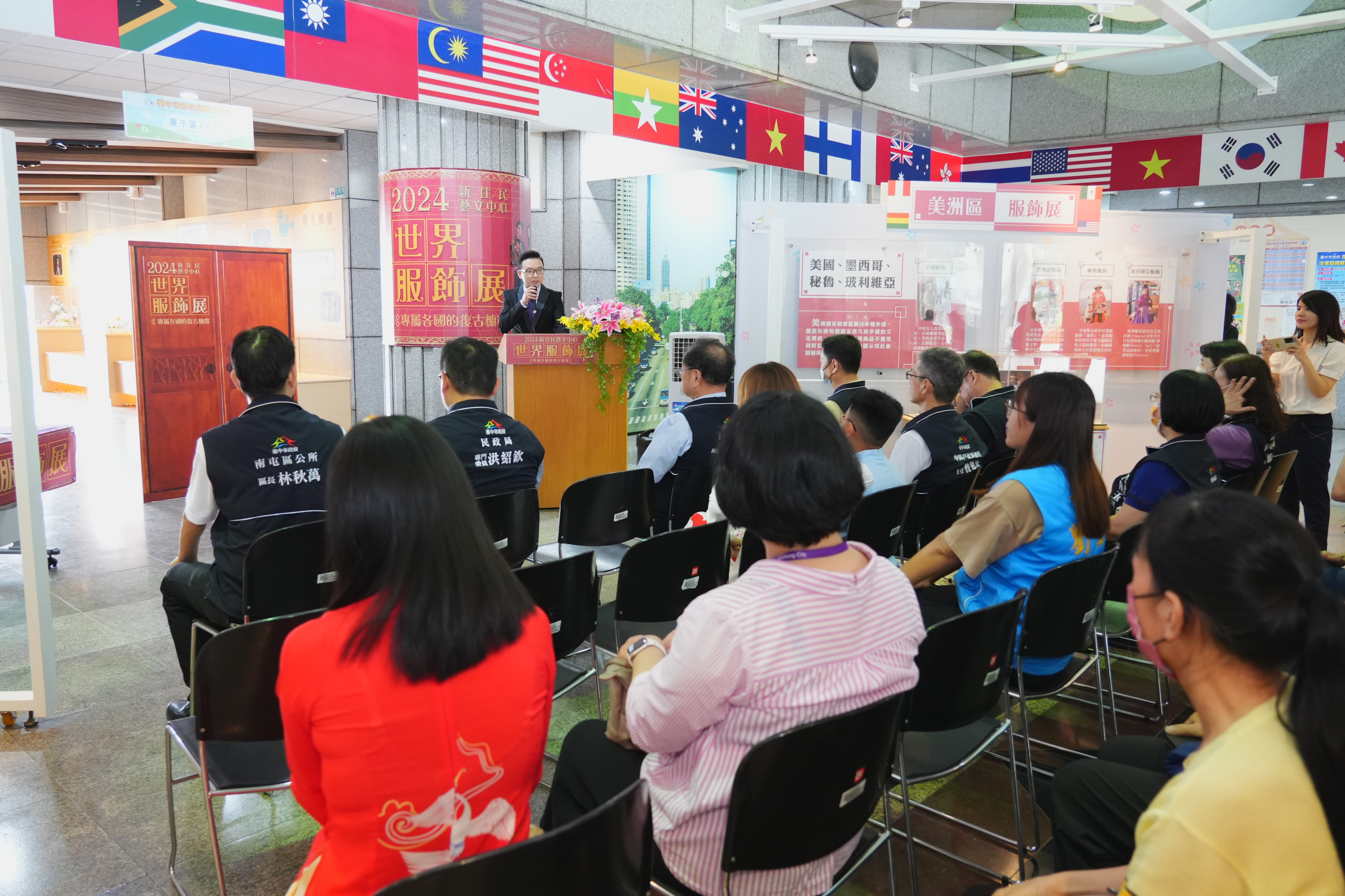 為讓市民朋友了解新住民各國文化,打造多元共融的友善城市,台中市政府自即日起至明年3月底,舉辦「2024世界服飾展-專屬各國的復古櫥窗」常設展,今(1)日在南屯區豐樂雕塑公園內新住民藝文中心盛大開展。民政局長吳世瑋出席活動表示,此次常設展規劃8大展區,預計展示全球29國特色傳統服飾,藉此讓民眾從服裝認識各國的風土民情,欣賞各地穿搭特色及文化多元性,歡迎民眾踴躍參觀。