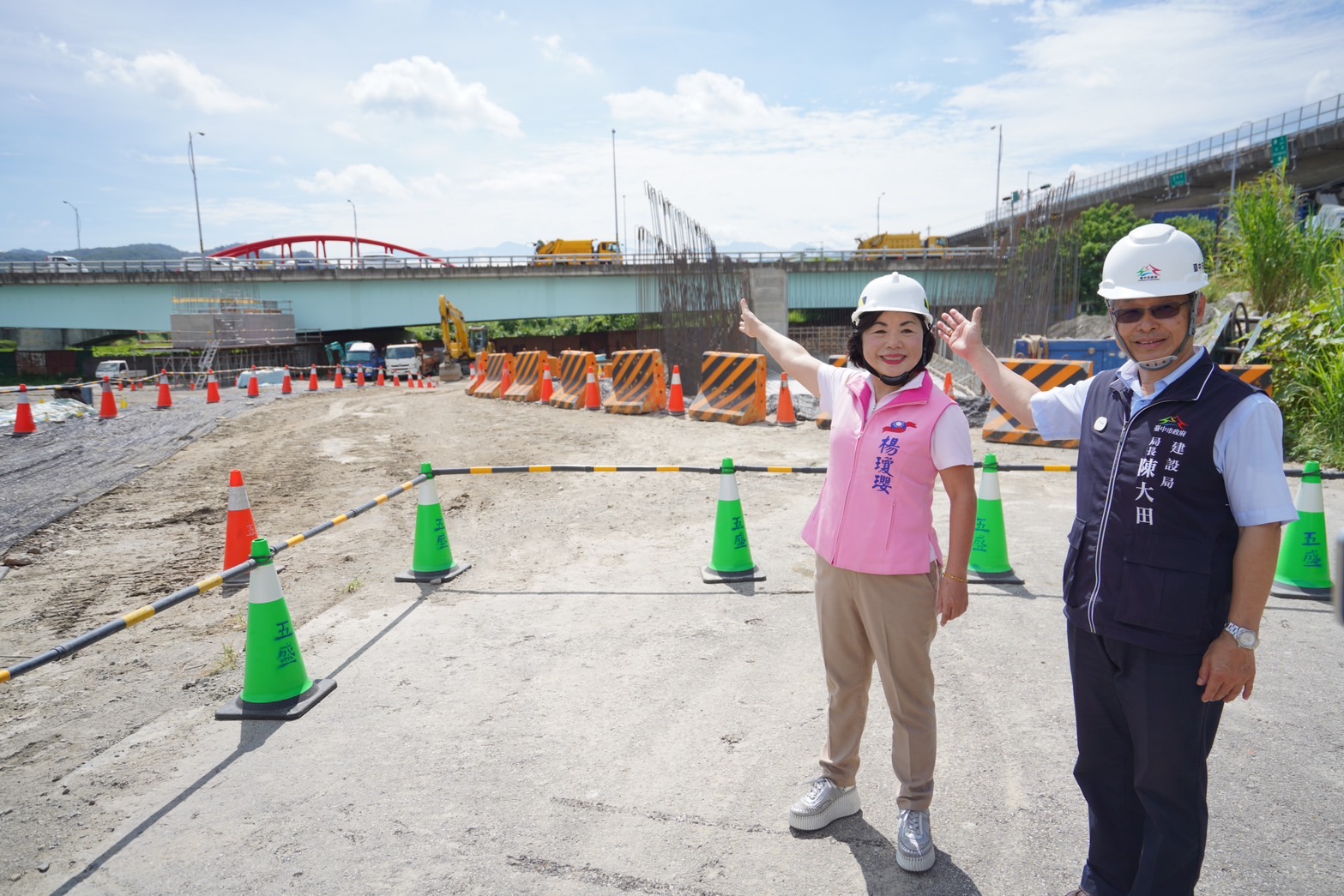 陳局長指出,神岡區堤南路與后豐大橋高低落差逾7公尺,是此次工程的一大挑戰,經過建設團隊嚴謹管控施工進度,並持續檢討執行效率,目前已完成橋墩施作,施工進度達24%,進度超前一倍,原預計明年2月完工,為提早解決民眾上班塞車問題,建設團隊將全力朝年底前通車目標邁進,也提醒廠商落實施工防護及防汛作業,創造安全工作環境。