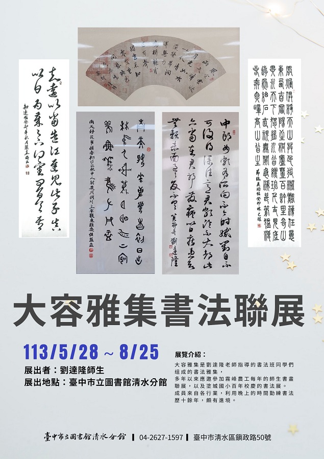 大容雅集是劉達隆老師指導的書法班同學們?成的善法雅集,