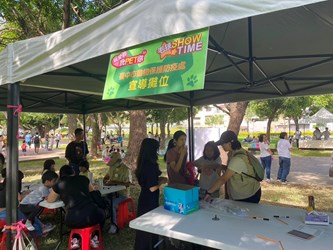 另外動保處設置了動物繪本著色與胸章製作攤位,許多家長帶著孩子一起坐下來畫畫,這些活動不僅促進親子關係,讓孩子們能揮灑創意畫出他們喜愛的動物,同時學習許多動物保護知識,傳達飼養寵物過程中應盡的責任和義務。此外還有毛孩健檢攤位,現場由臺中市獸醫師公會的獸醫師提供免費的健康檢查和醫療諮詢服務,向飼主傳達正確飼養觀念。
