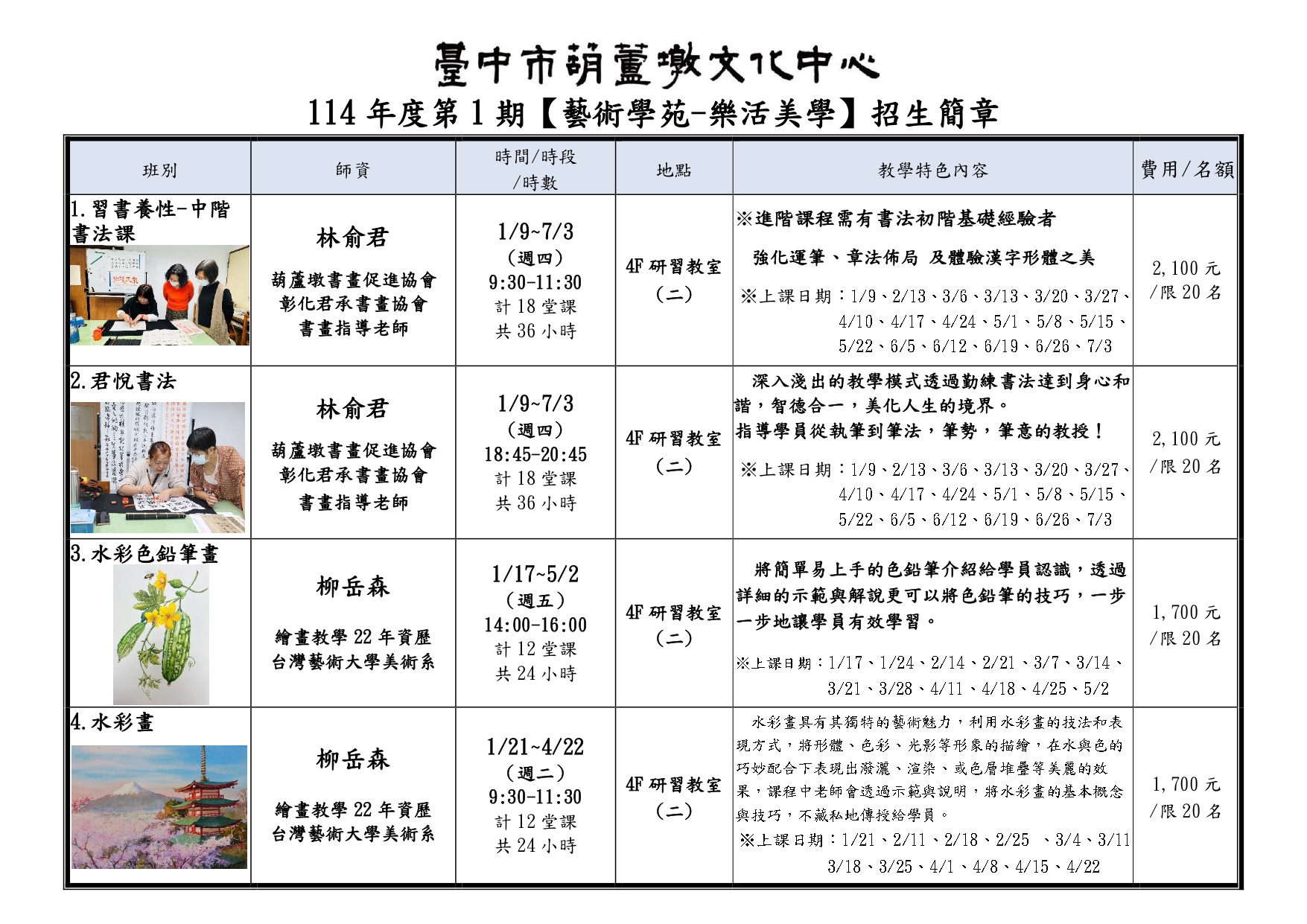 活動名稱 114年度第1期【樂活美學】-君悅書法