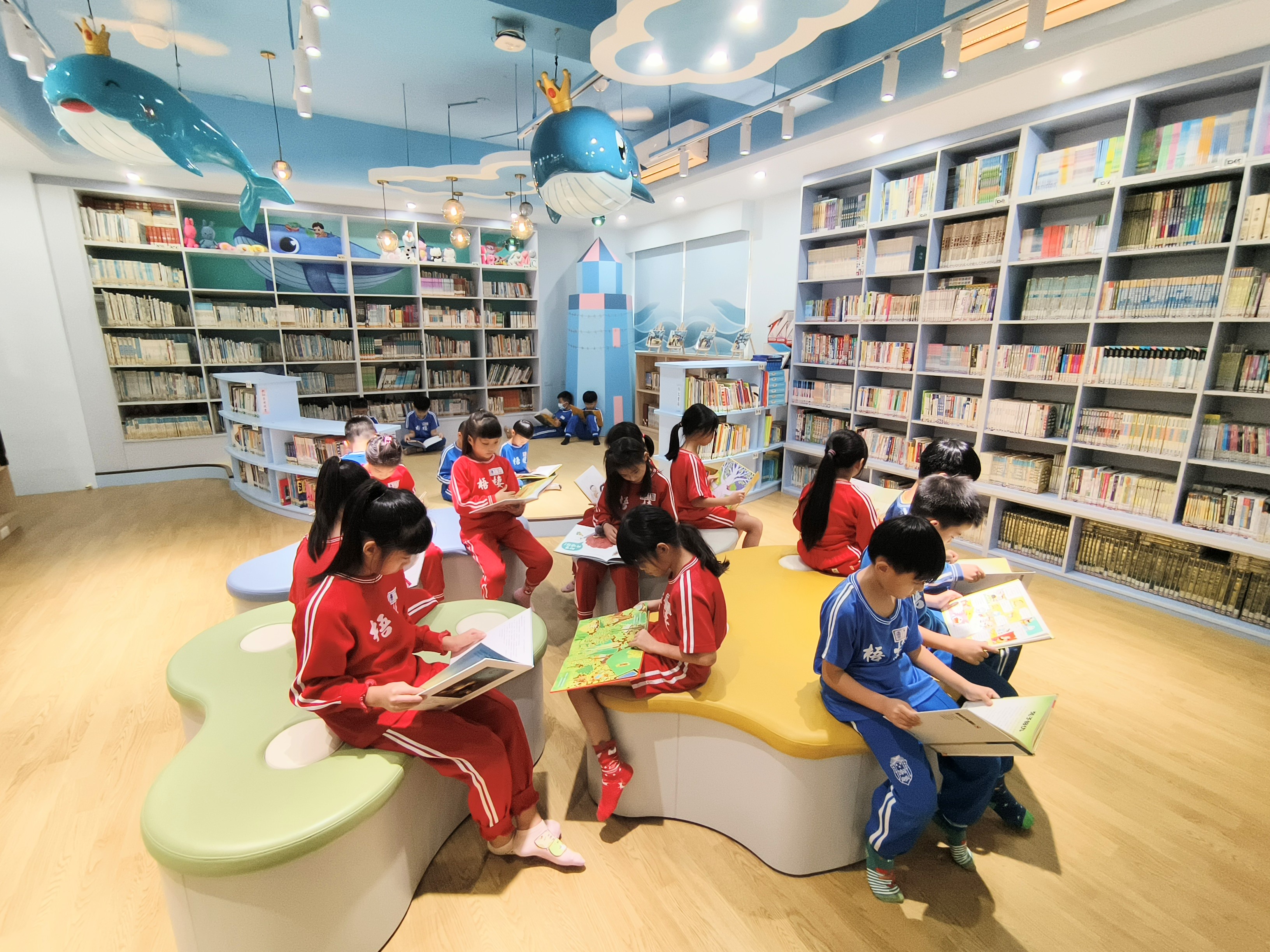 羅校長還分享了「書海梧優」共讀站的設計理念以國際港口城市為意象,打造出具有海洋特色的閱讀空間,包括船型服務台、海鷗飛翔的電腦檢索區、博物館風格的書架、海洋主題的閱覽區及充滿科技感的影音展演台等。
