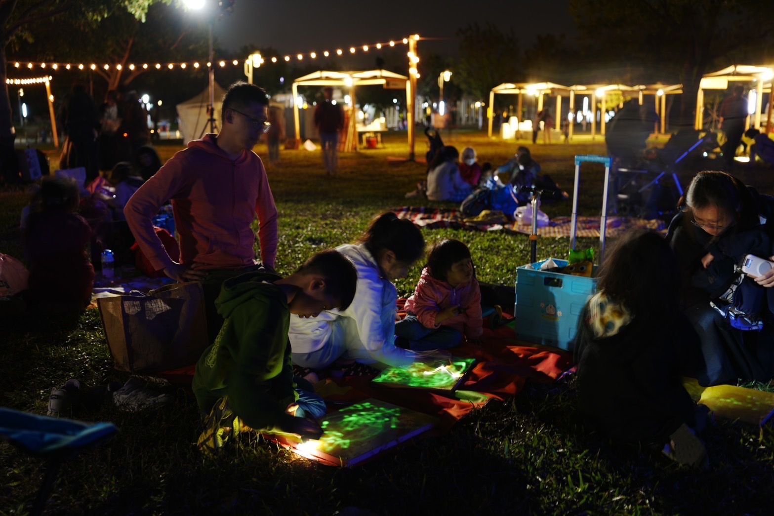 此外,「書本野餐」讓市民在舒適的草地上享受愜意地閱讀與交流時光;「黑青藝術計畫」帶來新穎的AR、MR互動吸引年輕族群參與;「創造焦點」的創意馬戲演出則把活動氛圍推向最高點,讓參與者驚呼連連;而晚上壓軸登場的「星光放映」活動,在入夜的草地上放映紀錄片《神秘塗鴉客:誰是Banksy?》,更為活動劃下完美句點。