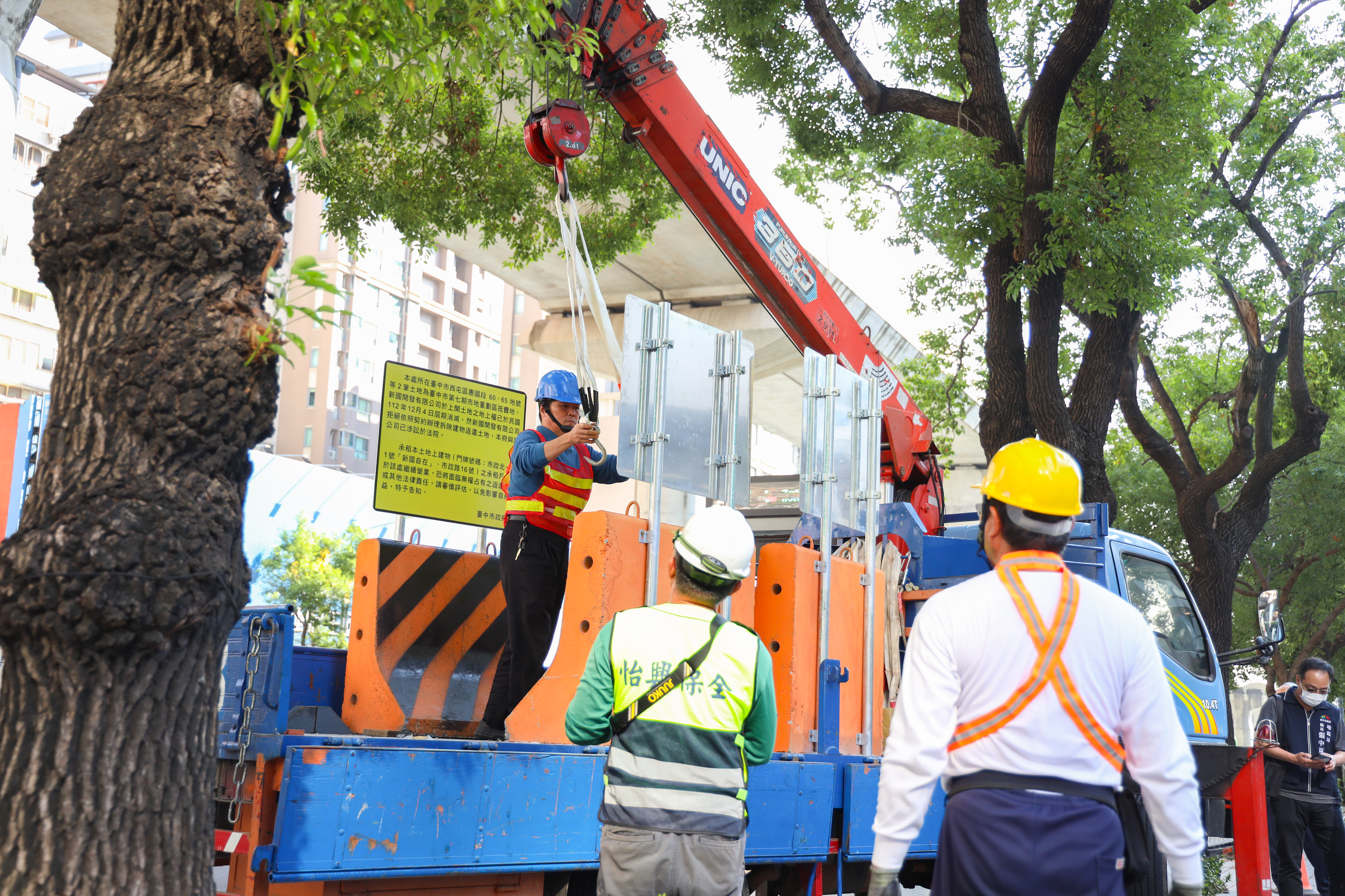 台中市政府為促進西屯區惠國段60、65地號等2筆抵費地活化利用,於民國92年與新國開發有限公司簽約設定地上權,由公司開發商場使用,合約已於去年12月4日到期,須拆除建物歸還土地。針對業者經多次函告仍未依約執行,市府為捍衛公權力已提訴訟;另為避免影響承租商家,台中市地政局副局長劉正倫今(10)日率隊前往放置告示,呼籲業者儘速依約還地。