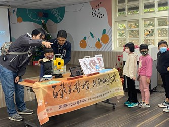 台中市東勢地政事務所於今(7)日在地籍圖重測區內的東勢區明正國小,將測量儀器搬到現場實際操作解說界址測量流程,同時開箱土地登記、測量、地價、編定類迷你工具檔案的教具箱,過程中小學生們踴躍動手模擬地政工作,成為地方與家庭推廣地籍整理的小幫手,地政產權意識從小紮根。