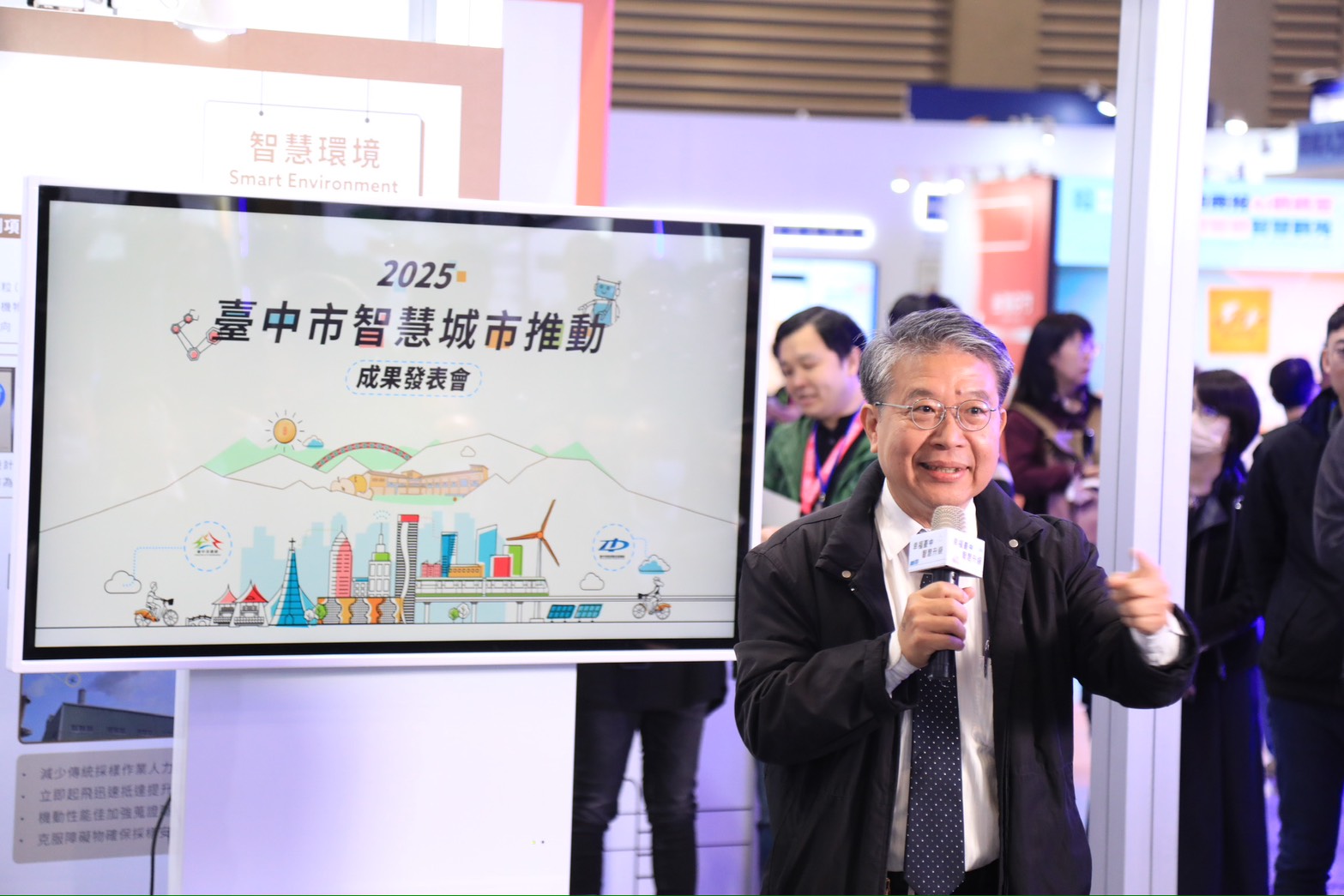 2025智慧城市展於3月18日起至21日在台北南港展覽館2館精彩登場,台中市政府今(20)日舉辦「智慧台中成果發表會」,由台中市副市長鄭照新率市府團隊向國內外分享台中推動數位轉型、淨零發展的卓越成果及對未來智慧城市的願景。鄭副市長指出,台中市政府今年以「幸福台中,智慧升級」為主軸,現場展示多項智慧應用都是為了追求幸福、智慧的生活,透過AI及大數據,打造陽光、健康、透明、便利、永續的城市,為下一代的幸福鋪上康莊大道。