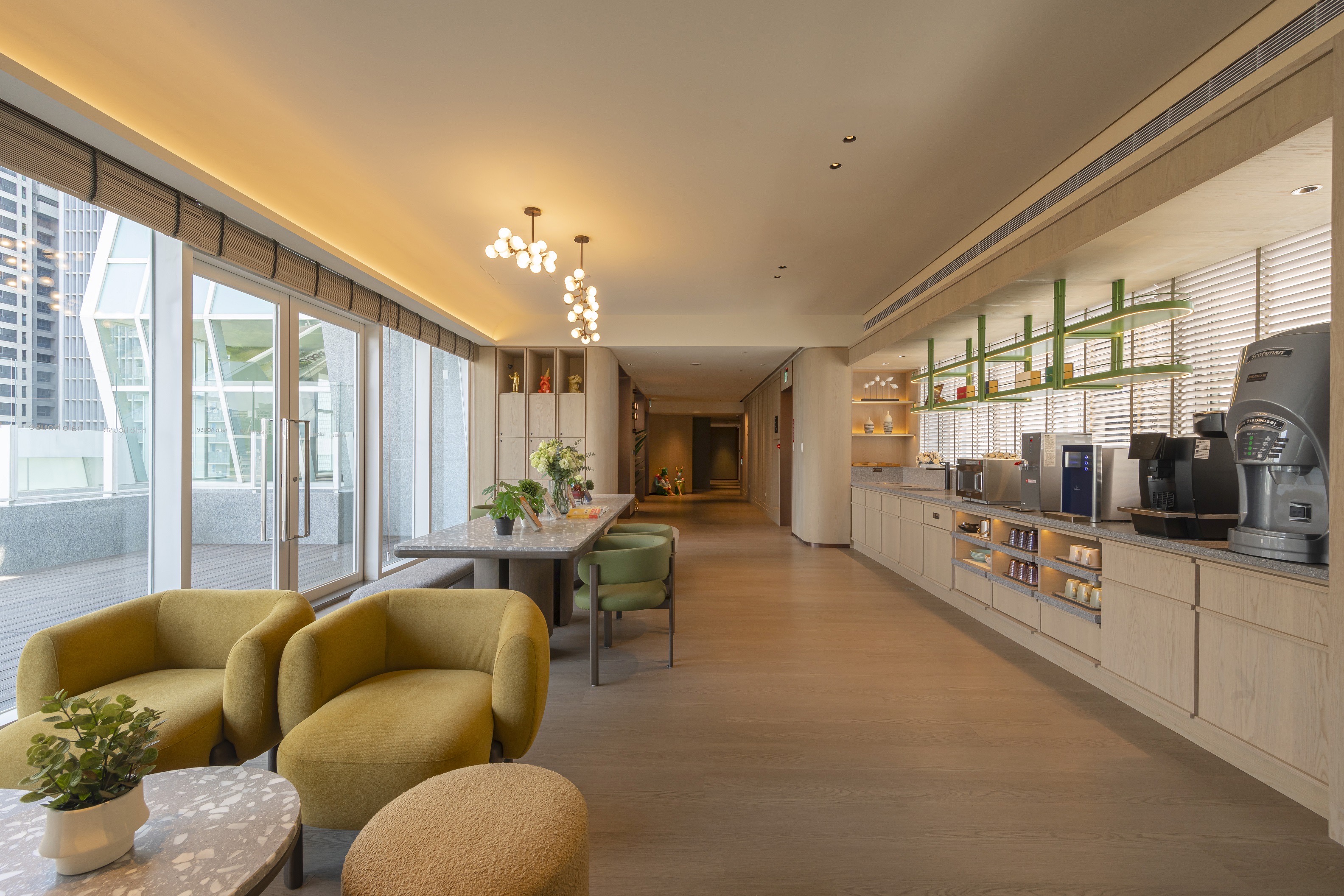 長榮酒店表示,《采寓 halo house》鄰近秋紅谷生態公園,步行即可到達台中大遠百、台中國家歌劇院和Tiger City等地標,外觀設計採用引人注目的六角形玻璃帷幕,內部融合涵洞及圓弧造型,靈感來自鄰近的國家歌劇院,展現建築藝術之美。酒店內裝以輕奢美學為主,空間採用溫暖明亮的美拉德色系,營造自主隨興的氛圍。此外,一樓與知名咖啡館「卡啡那CAFFAINA」合作,為住客提供精緻早餐,讓旅客在優雅環境中開始美好的一天。