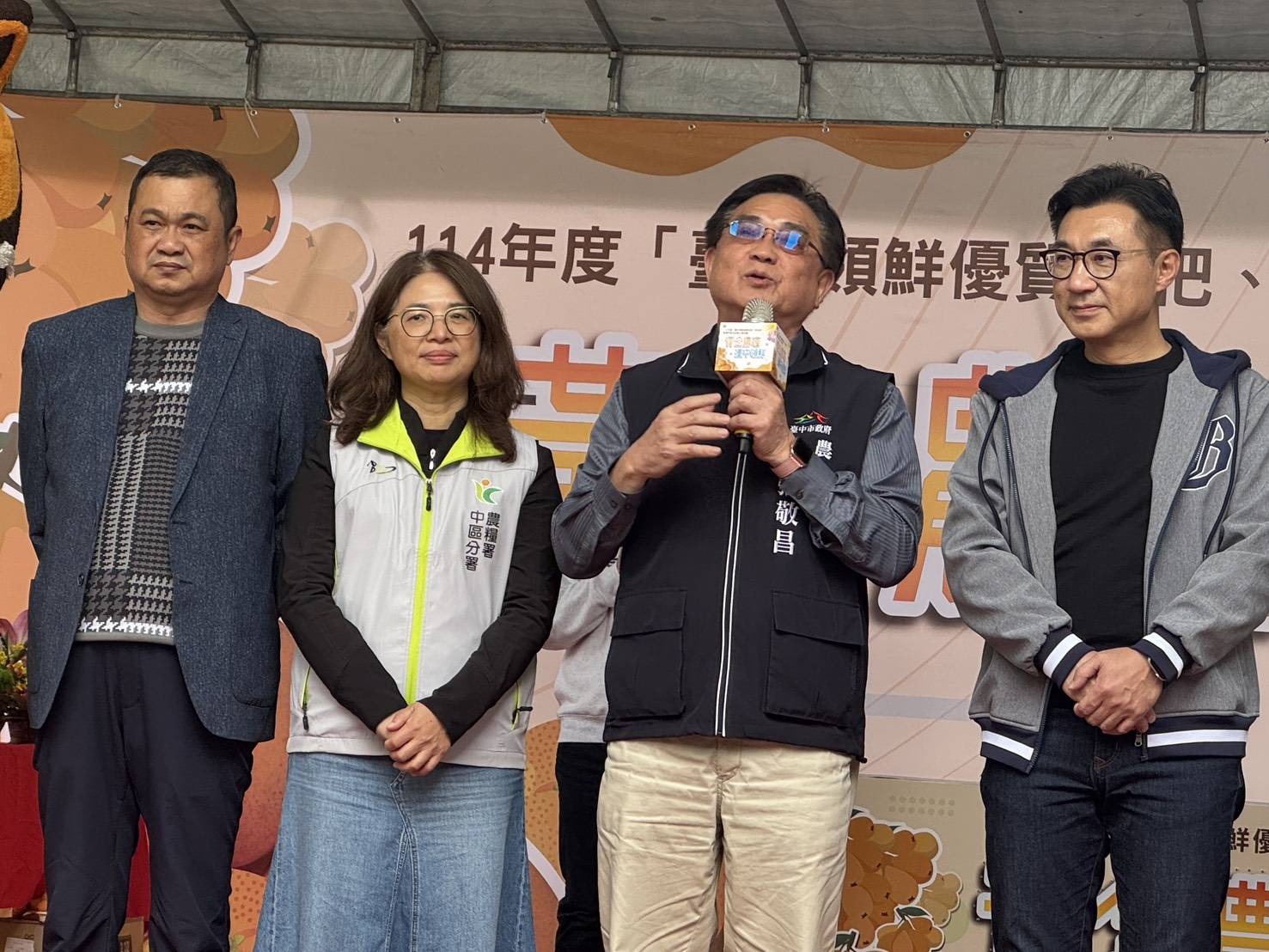 農業局長張敬昌表示,台中市擁有優越的地理環境與氣候條件,孕育出許多優質農特產品,此值初春時分,正是枇杷及茂谷柑生產季節,其金黃果色,有著黃金農產的美稱。此外,新社香菇生產居全台之冠,不論香氣、口感、厚度都讓消費者嘖嘖稱讚。