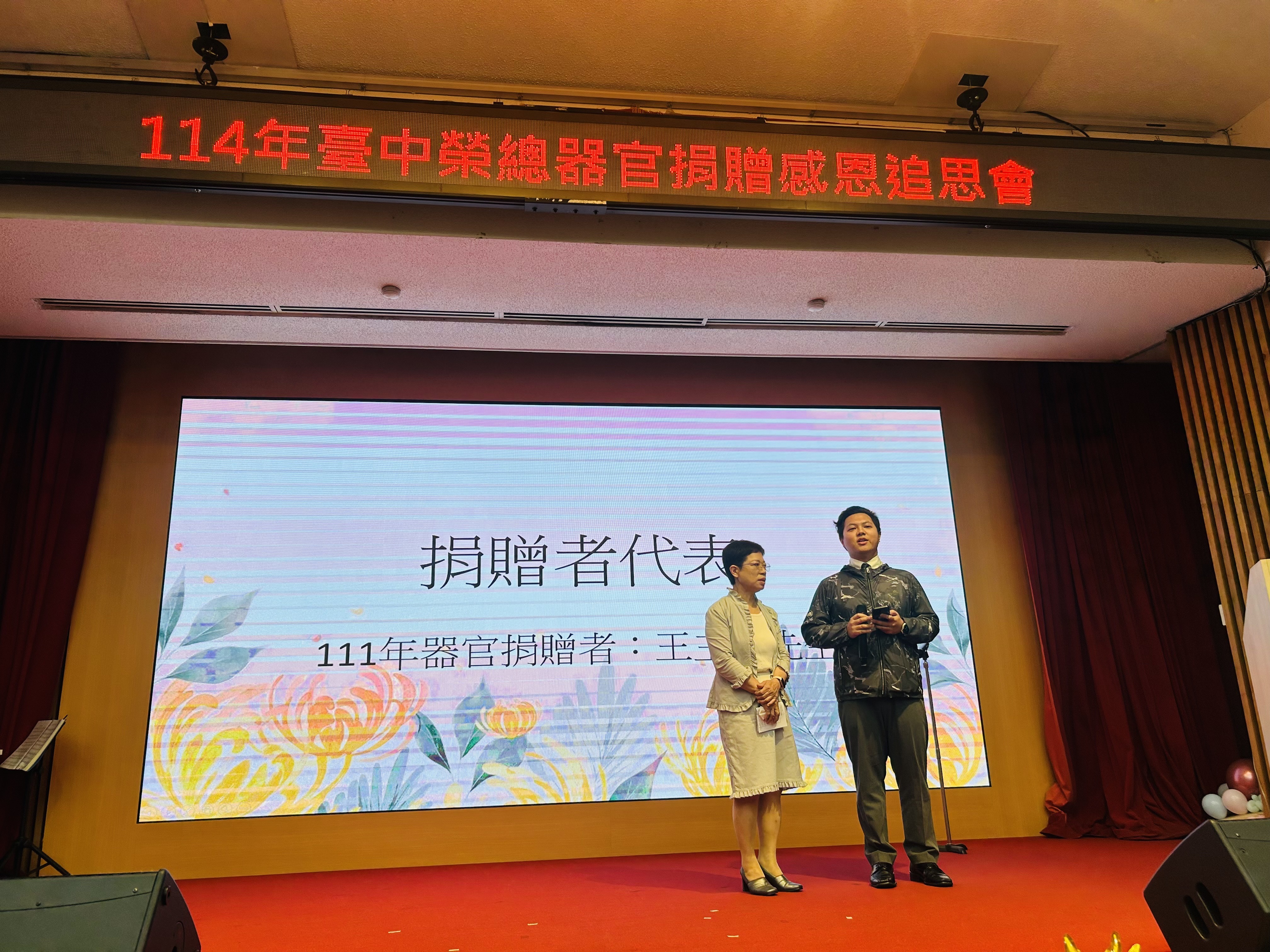 台中榮民總醫院今(12)日舉辦器官捐贈感恩追思音樂會,特別邀請捐贈者的家屬及受贈者家屬一同參加,共同懷念和感謝這份無私的奉獻。台中市政府衛生局長曾梓展出席表示,捐贈器官是一項不容易的決定,感謝所有捐贈者及其家屬,將悲痛轉化為大愛,無私奉獻的精神實在令人敬佩;也願所有接受器官移植的病友能勇敢面對人生,展開新的篇章,活得精彩。