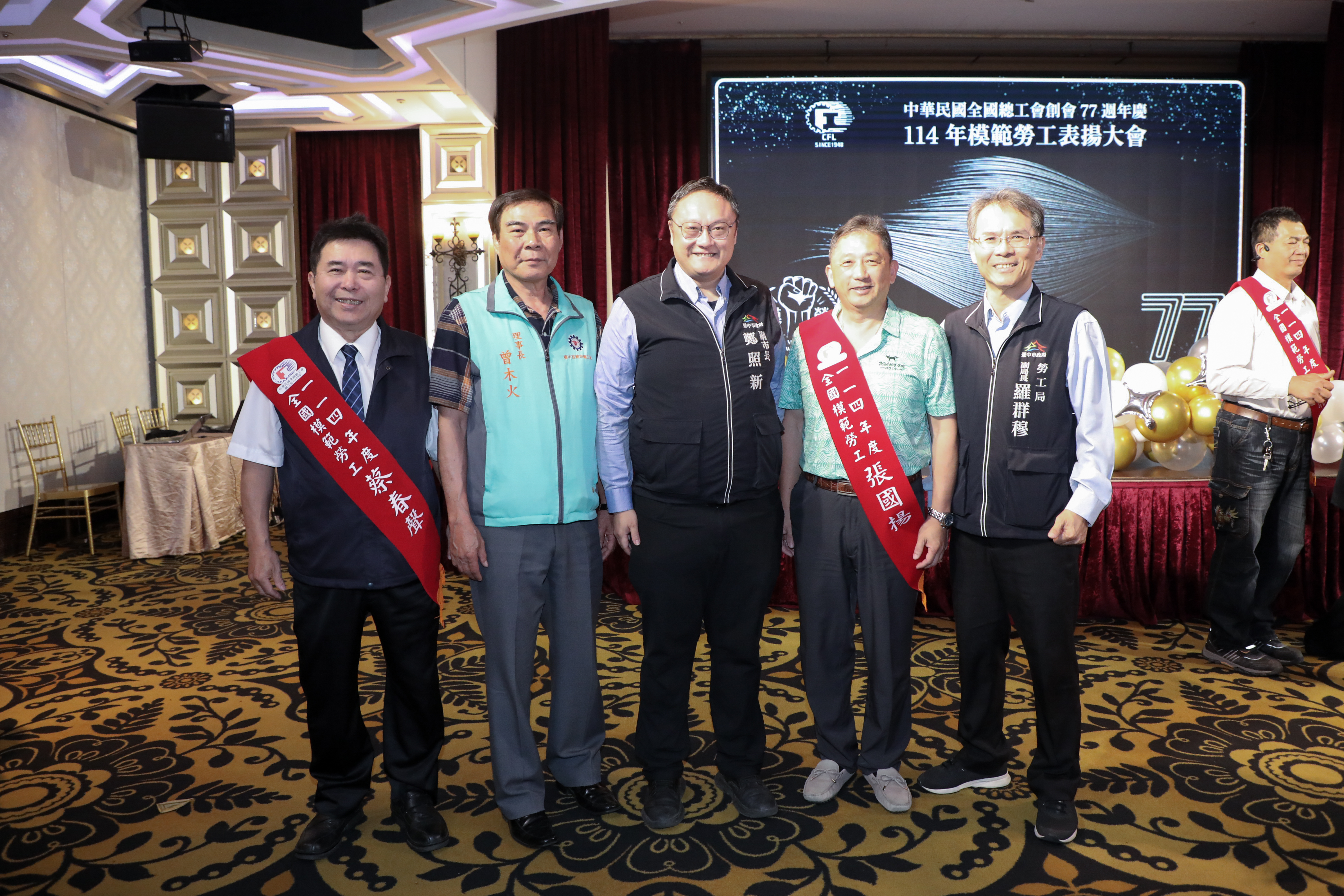 中華民國全國總工會今(18)日舉辦「創會77週年慶暨114年度模範勞工表揚大會」,特別選在五一勞動節前夕,表揚98位模範勞工。台中市副市長鄭照新代表市長盧秀燕出席肯定獲獎的模範勞工,感謝勞工朋友對國家產業及經濟發展的努力與奉獻,也感謝理事長温國銘及理監事團隊的付出;他強調,因為勞工朋友在各行各業堅守崗位、專業奉獻,城市才能穩健發展、人民生活才能安定幸福。