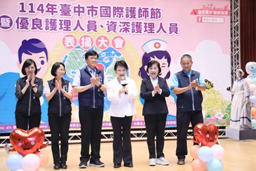 國際護師節將至,台中市政府衛生局今(5)日在市政大樓4樓集會堂舉行「114年台中市國際護師節暨優良護理人員、資深護理人員表揚大會」,表揚240位優良及資深護理人員。市長盧秀燕出席表示,她代表全體市民向白衣天使致上最高的敬意與感謝,他們不僅是「人間天使,更是現代菩薩」,感謝護理人員們始終站在醫療的最前線,堅守崗位提供民眾醫療照護,她提醒護理人員長期照顧病患健康的同時,「也一定要好好照顧自己的健康!」
