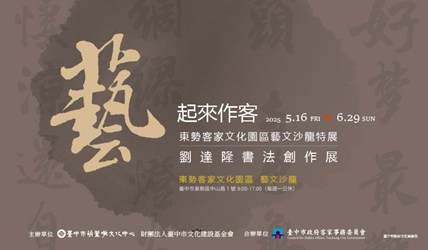 臺中市美術家接力展於1988年首創,迄今已邁入37年,共入選271位藝術家,其間不乏本市在地優秀的客籍藝術家,為深化在地藝術家創作量能並持續美術家接力展推廣觸角,規劃發起「藝起來作客」展覽,邀請出生於臺中山城,也是接力展第86棒的劉達隆老師展出書法作品,期待透過展覽促進藝術文化的交流與發展,讓觀眾感受客家藝術與人文的魅力,並逐步厚實客家底蘊。