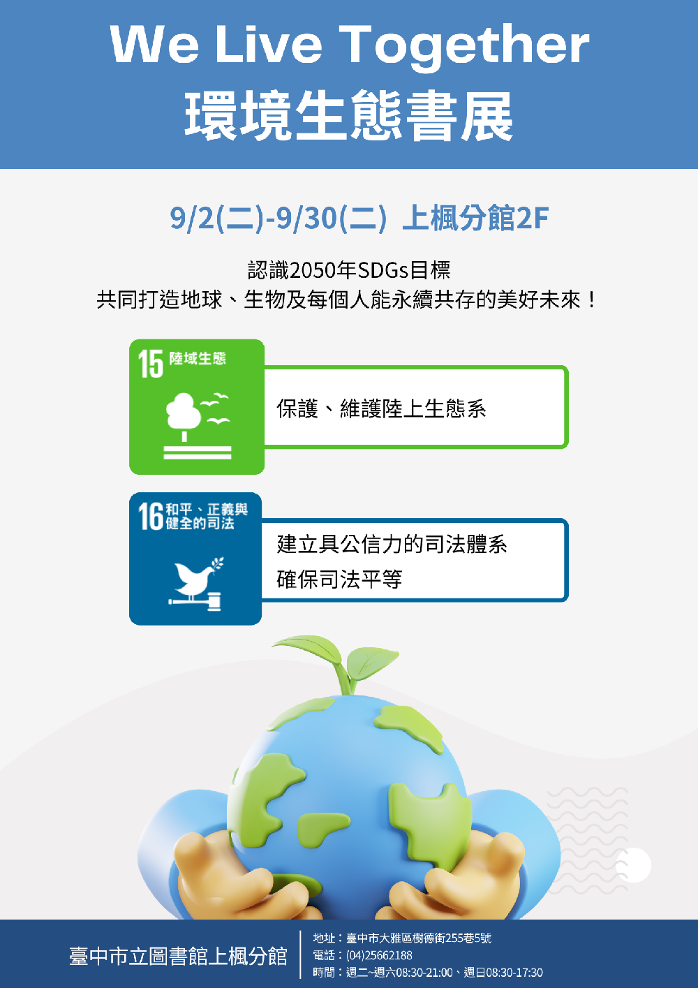 活動名稱 【上楓分館】9/2-9/30【We live together環境生態】書展