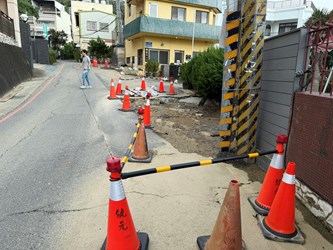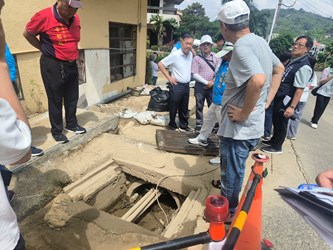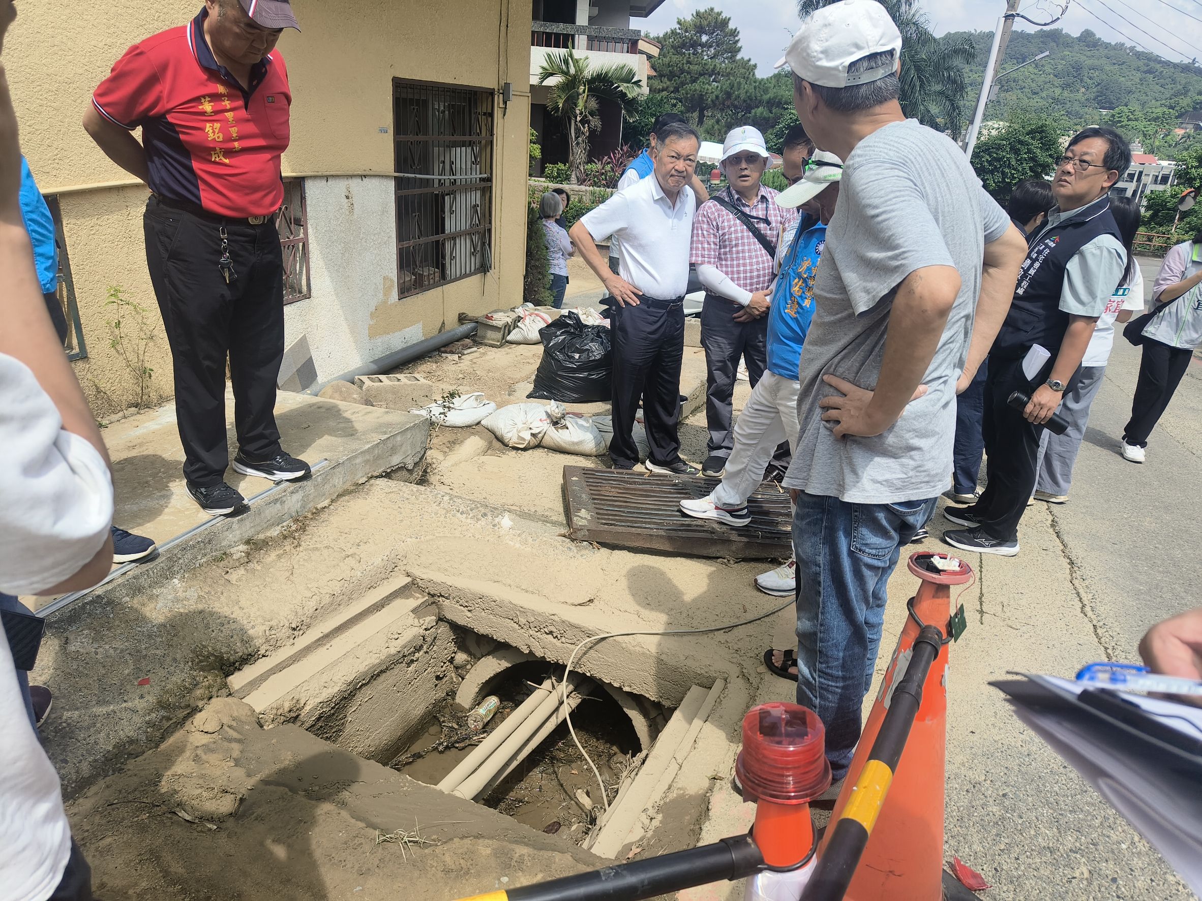 住宅處說明,此案最初由民眾於114年7月22日透過1999市政專線反映,並提供塌陷照片,經查疑似為社區圍牆下方、靠近現有巷道交界處地層下陷,然而近日連日豪雨影響,疑造成原塌陷範圍擴大,鋪面出現下陷情形,市府隨即於今日上午辦理現勘。