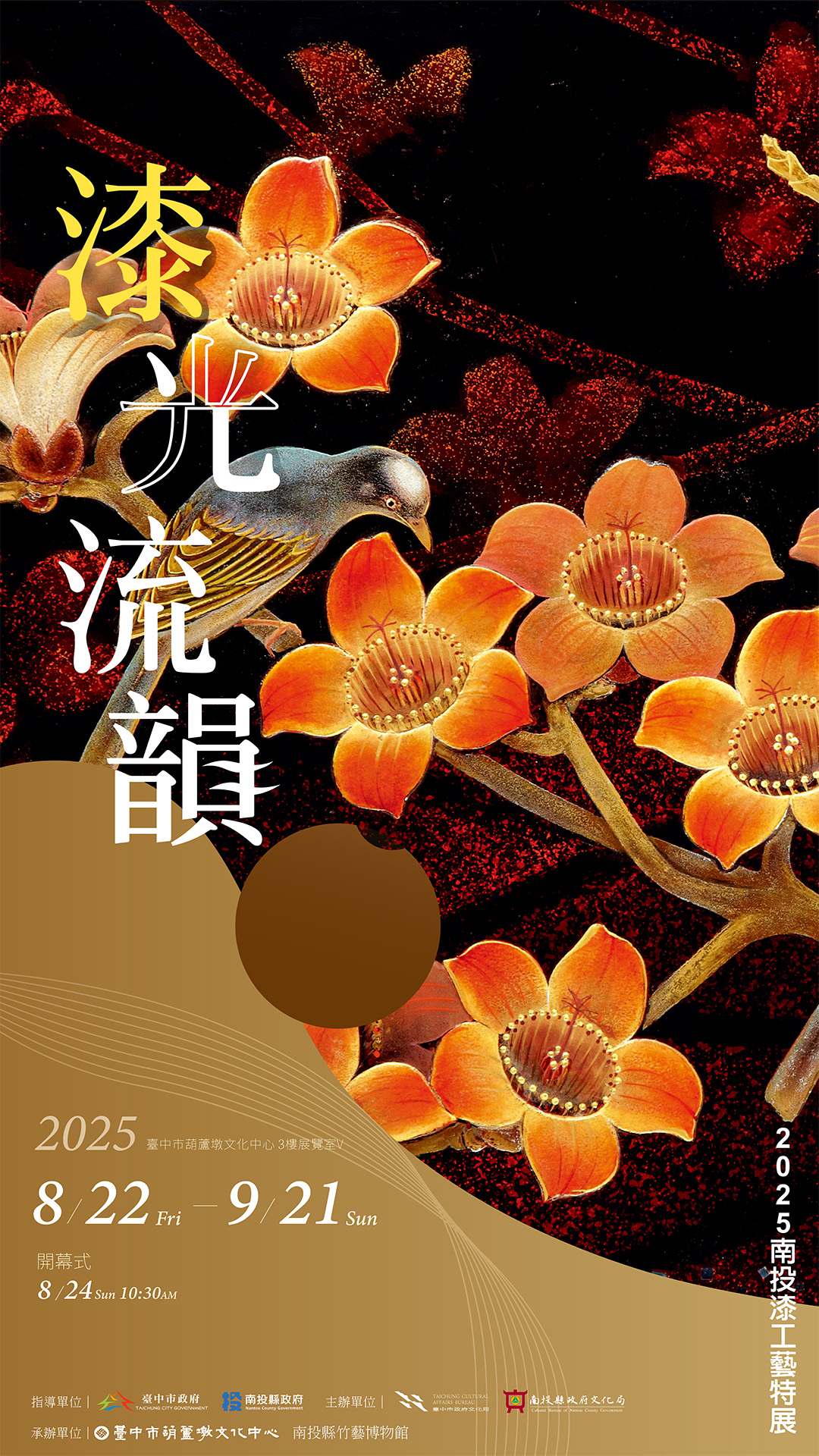 此次展出精選多件來自南投縣政府文化局典藏之漆藝作品,邀請多位漆工藝名家共同展出經典創作,一同展現臺灣漆藝深厚的技藝傳承與創新精神。「漆光流韻-2025南投漆工藝特展」誠摯邀請您走入漆藝的世界,體驗工藝與文化交織的感動。