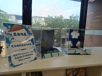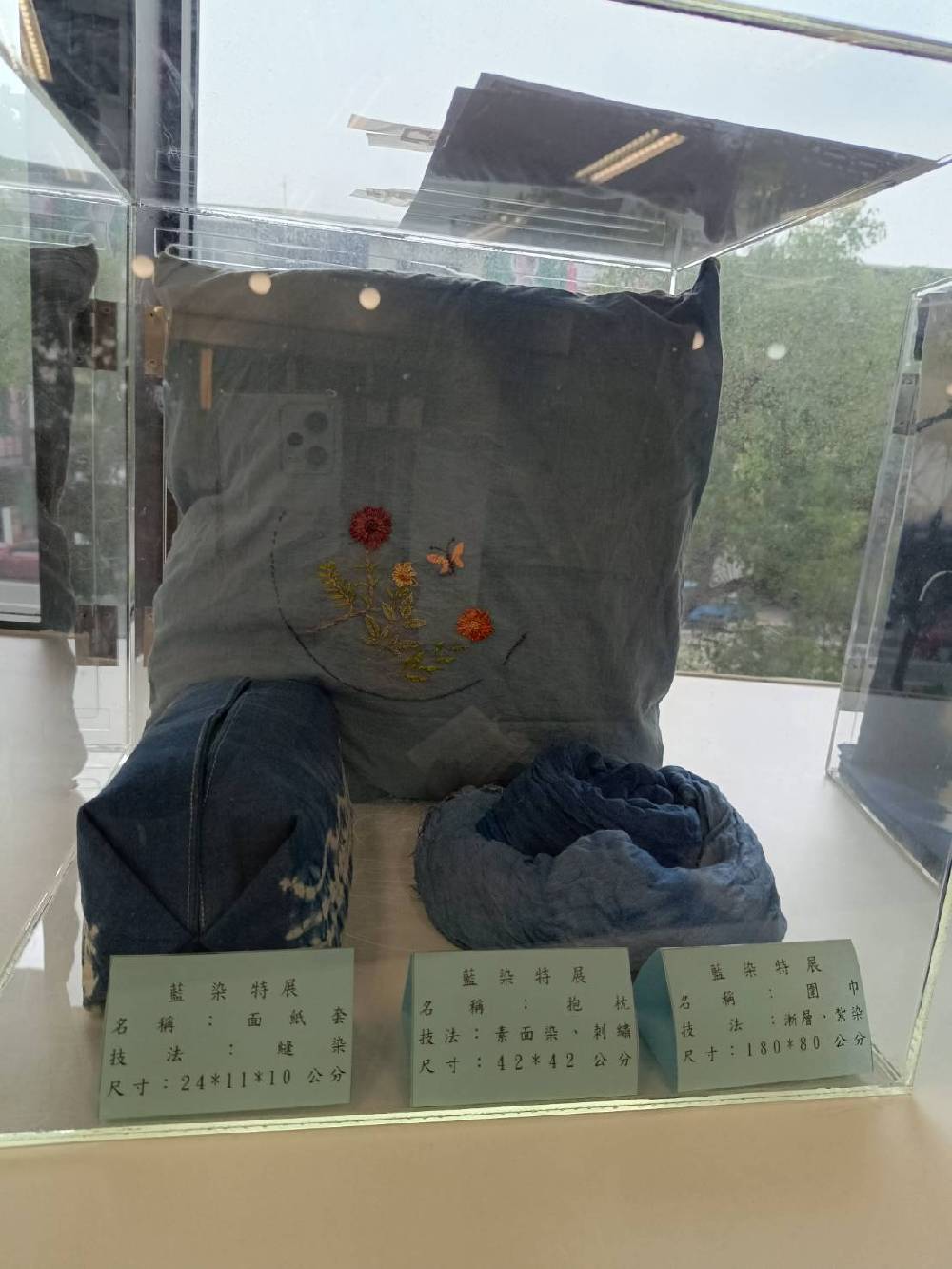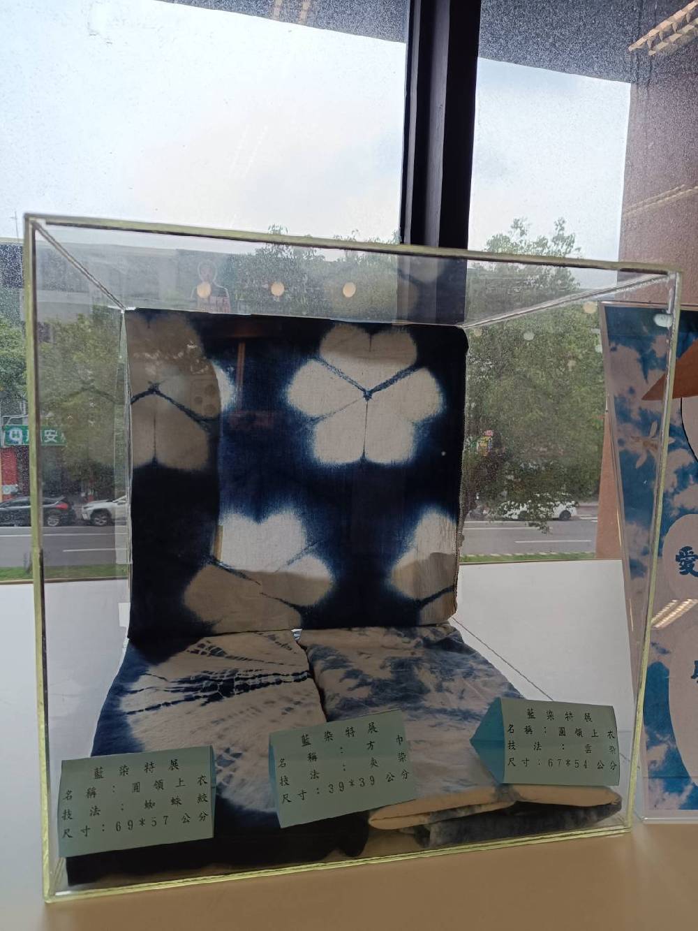 藍染是一種利用植物或礦物染料將織物染成藍色的傳統工藝。 這種工藝歷史悠久,這次展出的技法包括縫染、紮染、夾染等,呈現出不同的圖案和效果。 藍染不僅用於服飾,也廣泛應用於生活用品,如家飾等,具有很高的實用性和美觀性。