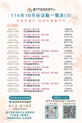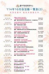 更多詳細內容洽該中心活動海報、FB及LINE公告資訊
