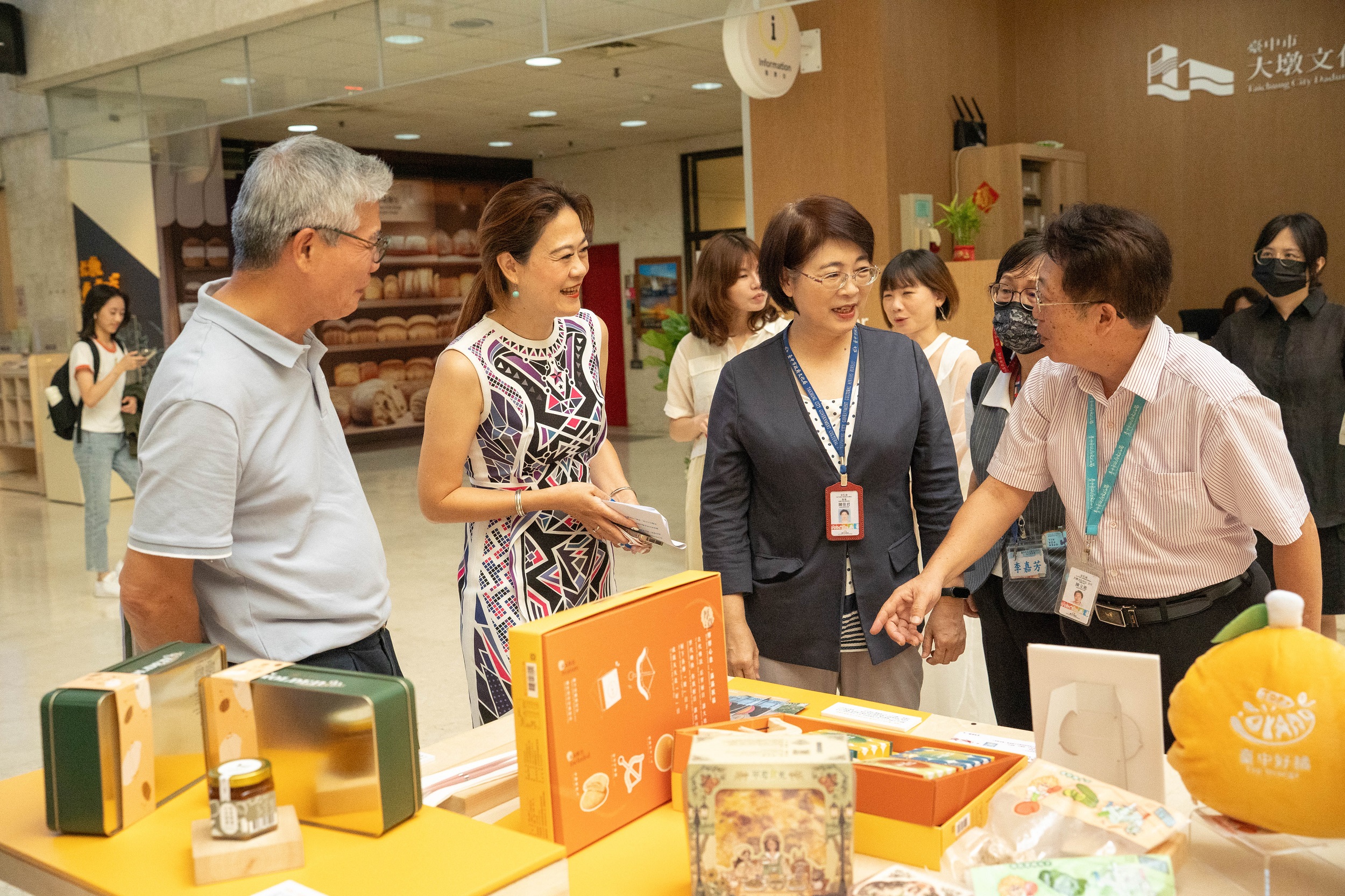 工策會推出「台中市十大伴手禮」,包含Merry Young快樂襪與春水堂聯名推出的「超越珍奶的愛」、啡比尋藏的《咖啡渣循環經濟尋寶禮盒》等,這些展品都在日常生活中實踐環保永續的精神;觀旅局則以精緻的完登徽章行銷台中山岳旅遊;客委會透過別具特色的兒童繪本帶領孩童了解台中客家山城特有的文化祭典,展現台中多元的文創能量。