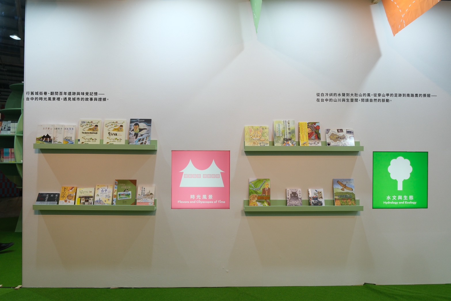此次台中主題城市館選書以「台中大百科」為核心理念,規劃5大單元─「台中選書 × 書頁裡的奇幻旅程」互動裝置、信仰文化、人文故事、水文與生態、時光風景,現場展出上百本精選書籍,並透過互動設計,引領觀眾在閱讀中看見台中的歷史脈絡與文化魅力。展場書籍除部分限閱外皆可購買,凡購書即可獲得限量紀念明信片,自備環保購物袋者更能獲得主題城市館獨家紀念品,邀請大小讀者將閱讀熱情延伸至日常生活。