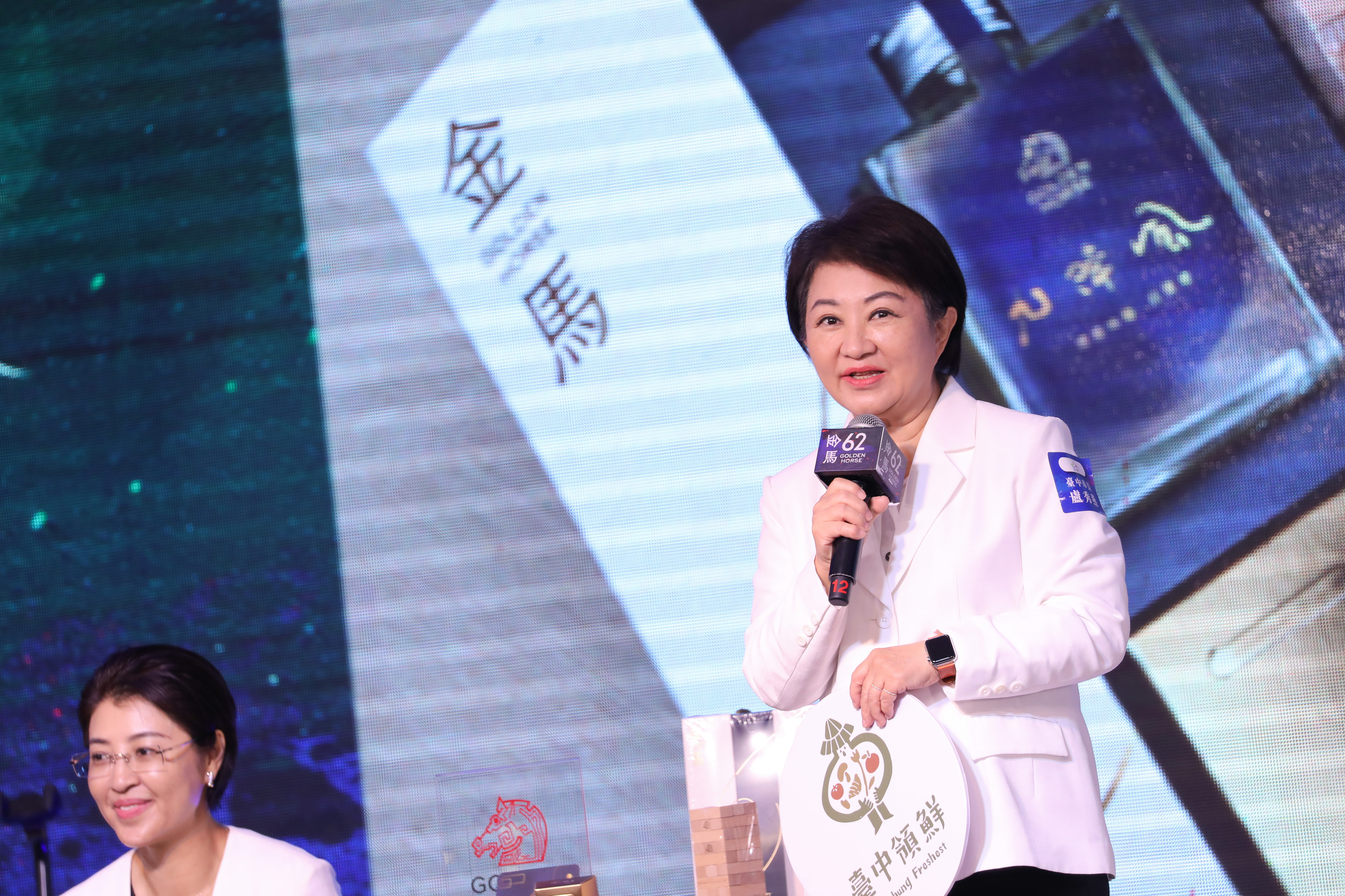 「五星連線-閃耀金馬:金馬62聯名商品曝光記者會」今(2)晚在彰化全國麗園飯店登場,台中市長盧秀燕受邀出席時表示,今年台中市的金馬影展聯名禮盒以「聚」為主題,象徵聚光燈下讓演藝人員與工作者的努力被看見,也代表五縣市女力首長攜手行銷中台灣。透過此次中台灣五縣市金馬聯名,行銷中台灣好禮,共同推動拚經濟,也祝福金馬影展及各縣市發展皆能圓滿成功!