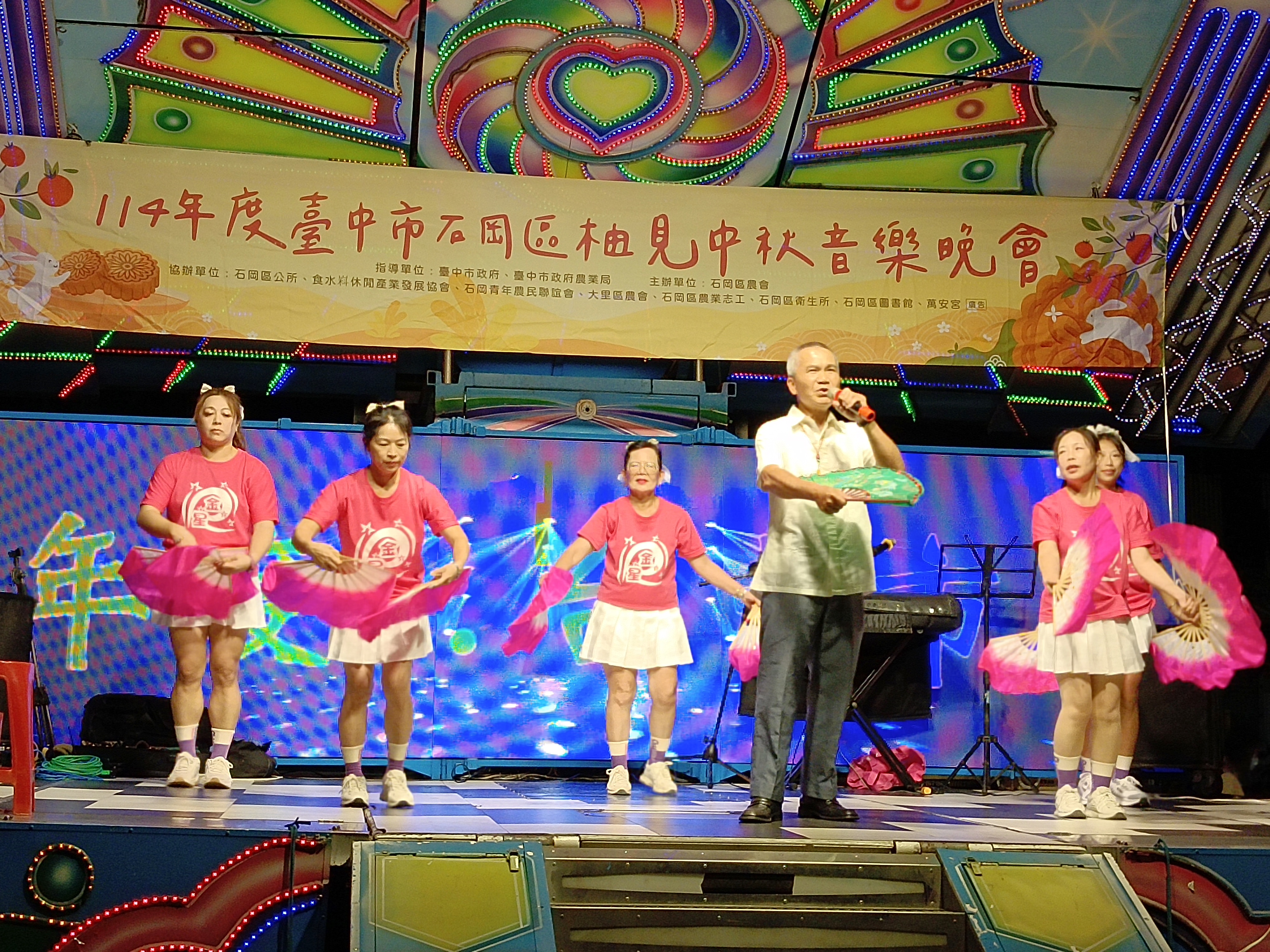 金風送爽,柚香飄溢!中秋佳節即將到來,台中市政府農業局輔導石岡區農會,於昨(3)日在萬安宮(台中市石岡區石岡街廟前巷1號)盛大舉辦「柚見中秋音樂晚會」,此次活動由區內團體德州排舞開始表演暖場,接著金星里及萬安里土風舞團體接連精彩演出,吸引眾多民眾熱情參與,現場洋溢歡樂氛圍。