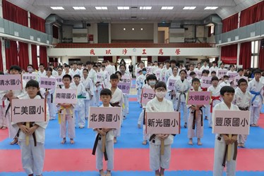 今日活動,運動局專門委員林宜萱、沙鹿區公所區長劉素幸、梧棲區公所主任秘書陳碧蘭、龍井區公所主任秘書許農、沙鹿高工校長魏有騰、育英國中校長趙育興、東峰國中學務主任吳佳穎、前台中縣教育處長王銘煜、前台中二中校長許耀文、台中市體育總會空手道委員會主委宋一信、總幹事宋以力均到場,立法委員顏寬恒暨台中市議會副議長顏莉敏服務處及市議員楊典忠服務處皆派代表到場支持。(10/04*15)*運動局