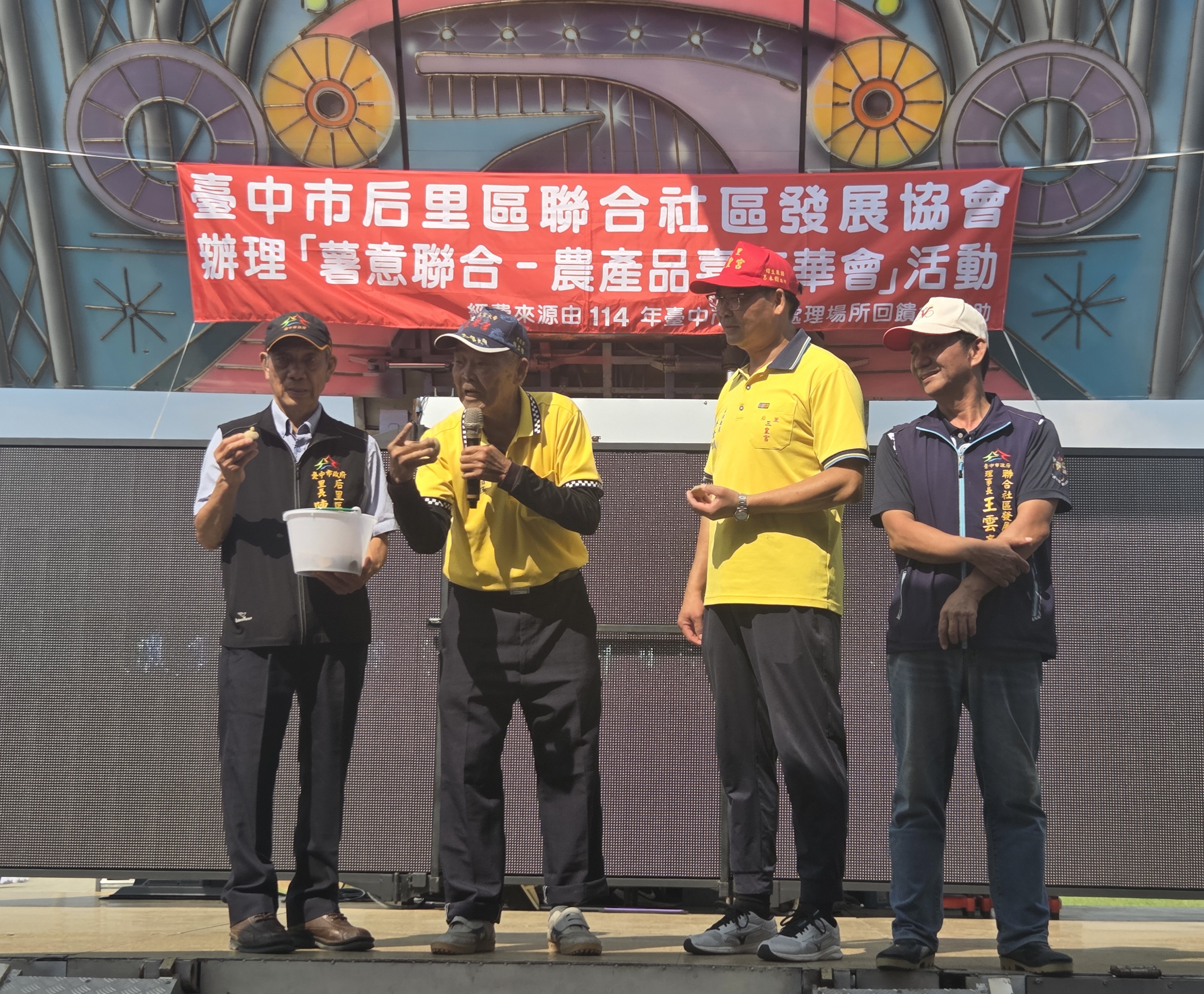台中市政府農業局輔導台中市后里區聯合社區發展協會,於今(4)日在聯合里三皇宮前廣場舉辦「薯意聯合–農產品嘉年華會活動」暨「洋芋飄香美食推廣計畫成果發表會」。此次活動結合農特產品展售、在地美食品嚐與社區展演,帶領民眾一同體驗后里區農村的多元風貌,並促進農產價值提升與社區交流。
