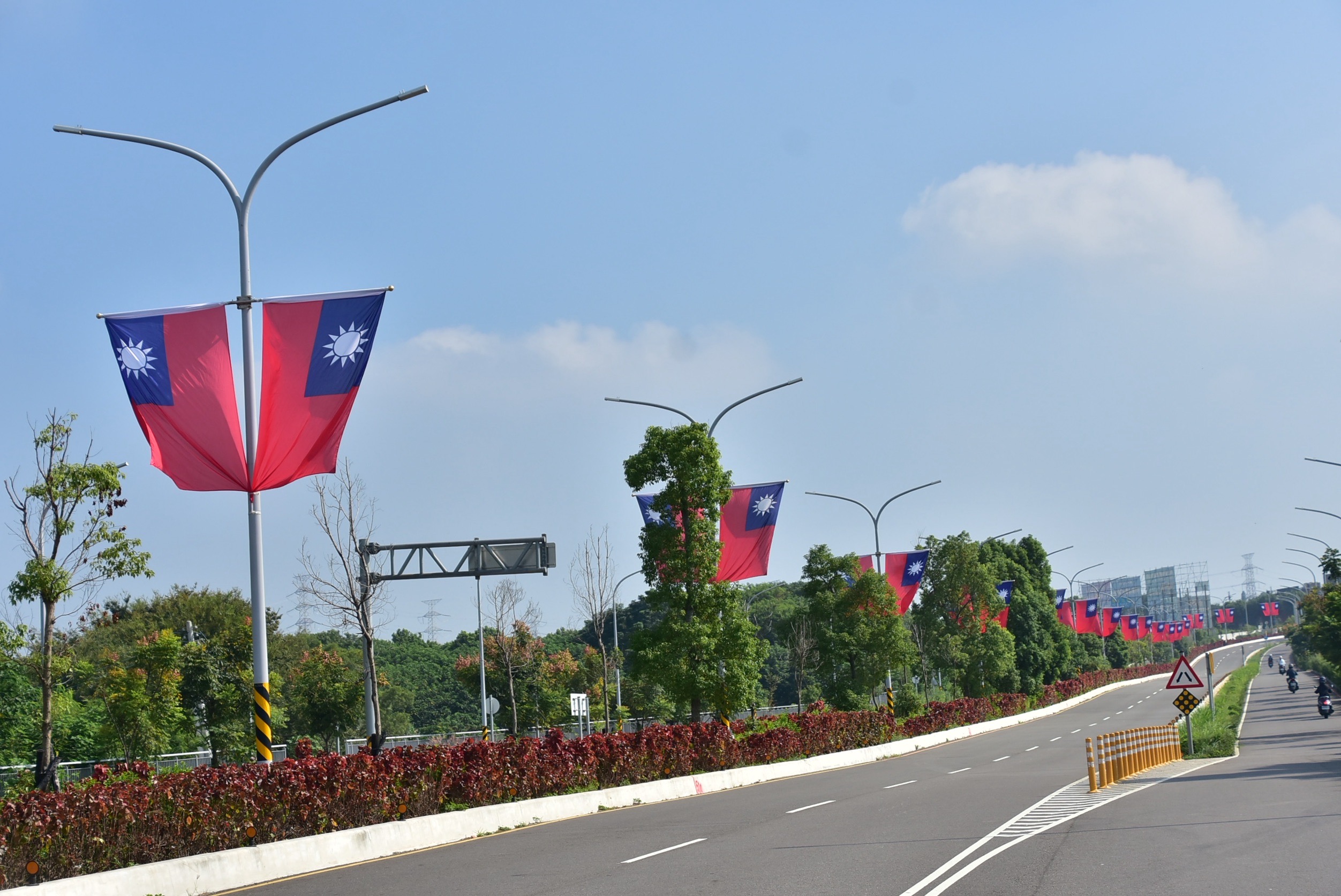 為迎接一年一度的雙十國慶,台中市街頭化身「旗海之城」!台中市政府在市長盧秀燕帶領下,由建設局聯手各區公所,在主要道路懸掛逾1萬6,000面國旗,延續去年廣受好評的羅馬旗與大型直式國旗設計,採用多層次、多形式的旗幟排列,不僅讓街景氣勢磅礴,也營造出熱鬧喜慶的國慶氛圍,讓市民與遊客一眼就能感受到節日的榮耀與歡欣。