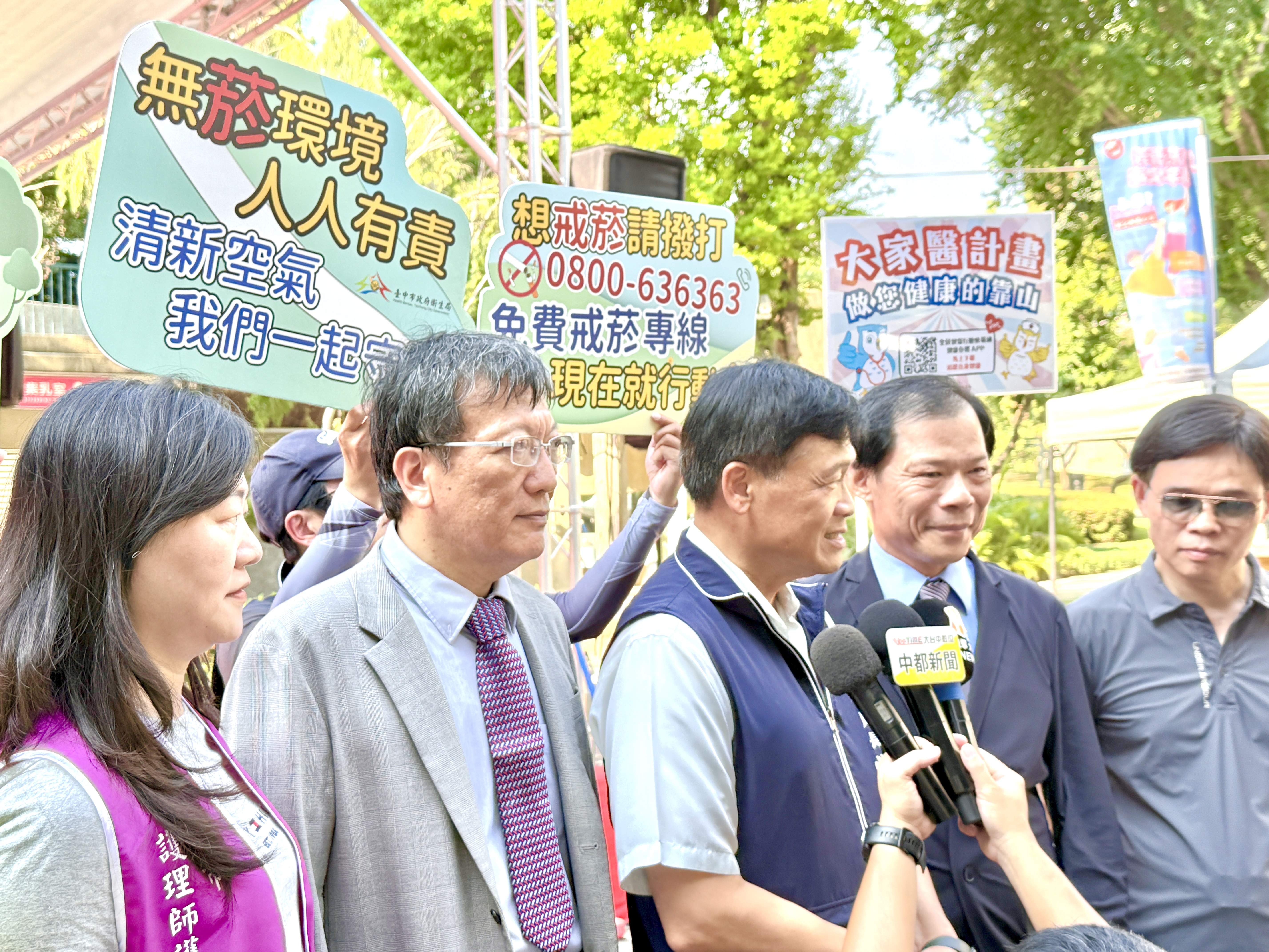 台中市政府衛生局於今(4)日於文心森林公園舉辦,「無菸芬芳 清享安康」無菸環境與戒菸服務宣導活動,邀請藝人蔓越莓姐姐宣導無菸理念,並有市府相關局處、醫事機構與大專院校共襄盛舉,並透過闖關與摸彩的活動,吸引市民朋友一同號召響應無菸環境。