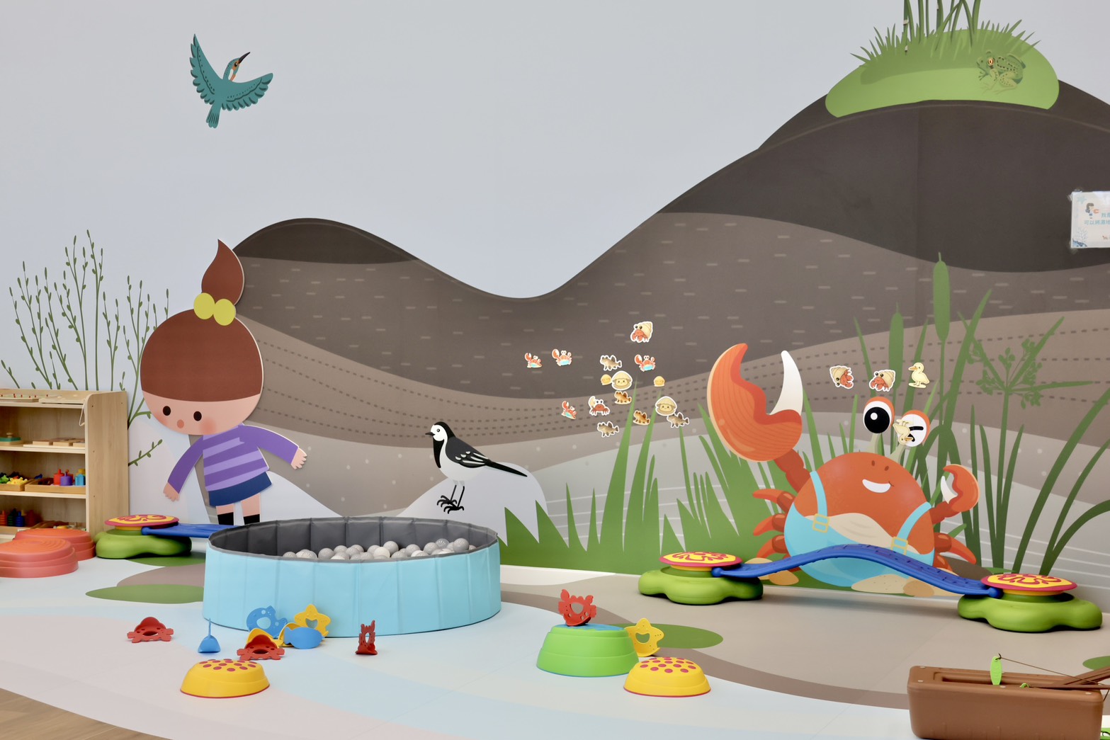 社會局指出,清水清子館結合運動元素,融入高美濕地意象,「操作區」是一面磁鐵互動牆,地面宛如海灘,讓親子想像濕地探險的樂趣;「大肢體區」設計幼兒體能人物圖像搭配大型肢體教具。「濕地探險」與「海洋環保」特色課程,帶孩子從小培養愛護自然的觀念,為海線家庭打造親子共學、共玩的新空間。
