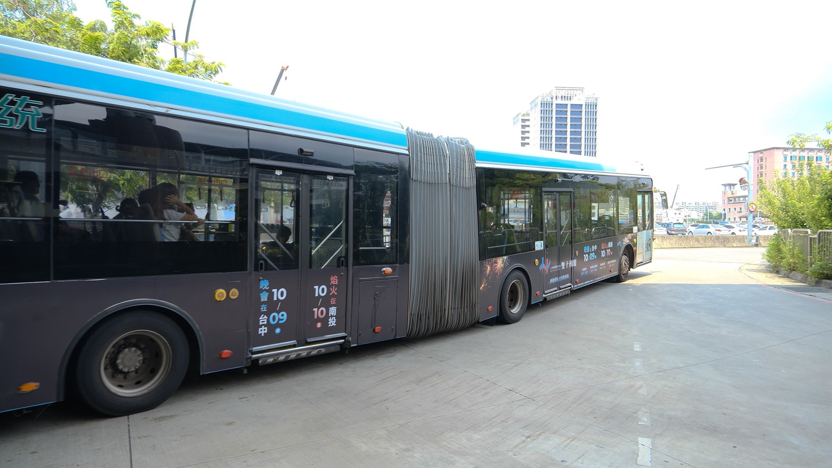 中市交通局新創意! 全國唯一雙節公車化身國慶晚會行動看板