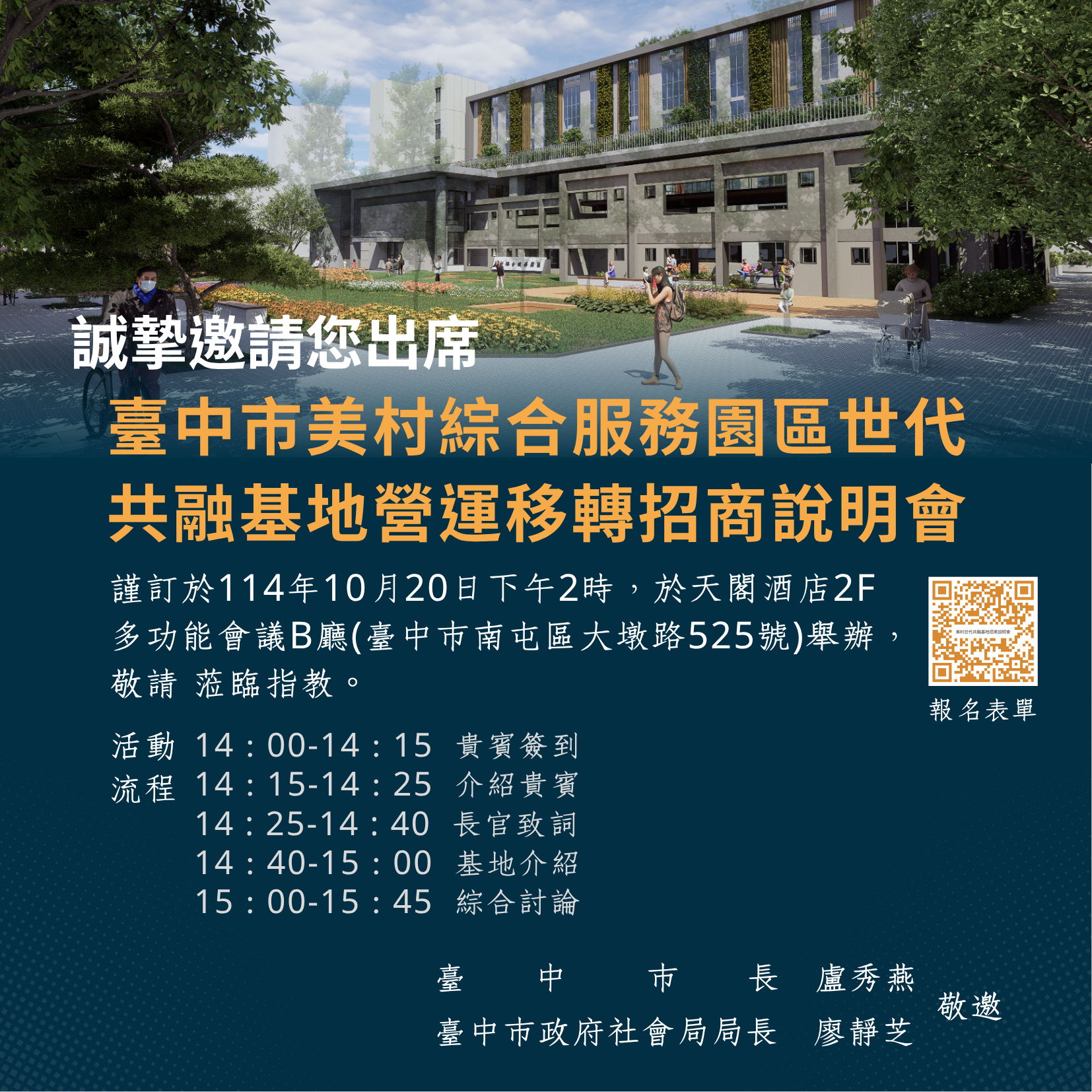 召開臺中市美村綜合服務園區世代共融基地營運移轉招商說明會