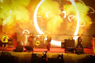 晚會後段由金曲歌手羅文裕、舞思愛、跨國樂團ADOGA與僑生冠軍葉恩琦接力開唱,展現台灣音樂的多元色彩;壓軸由本土天團玖壹壹與重金屬樂團血肉果汁機首度跨界合作,強勁節奏與搖滾能量掀翻全場,將氣氛推向最高潮。玖壹壹最後帶來〈明天再擱來〉,在萬人合唱聲中為國慶晚會劃下最完美句點,現場燈光閃耀、歌聲繚繞,氣氛震撼人心。