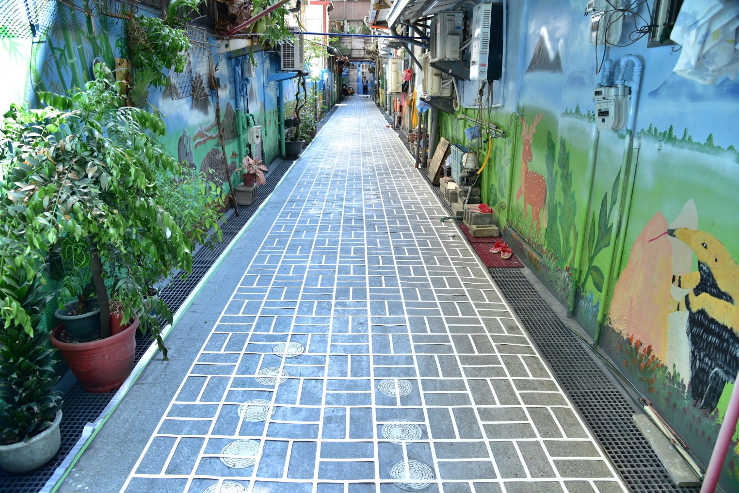 污水工程推動中最困難的一哩路,莫過於「後巷接管」,由於巷道施工空間狹隘、環境陰暗潮濕又雜亂,甚至還要克服住戶自行增建的障礙,使得推動過程充滿挑戰。為提升居住生活品質及改善周邊水域環境,台中市政府水利局積極推動後巷接管政策,並結合後巷環境美化,近期於南區長榮里完成「綠川」與「動物秘境」主題牆面彩繪,讓原本灰暗角落,搖身一變成繽紛童趣的彩繪秘境,成為居民聚會、休憩的新天地。