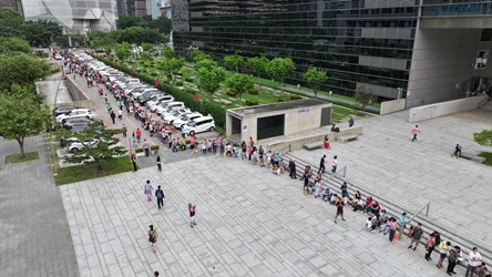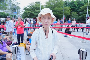 來自霧峰75歲的喻女士昨天下午4時多就來排隊,她說有多次來領取紀念品的經驗,有幾次太晚來沒領到,這次就提早前一天來排隊,很開心可以搶到頭香。