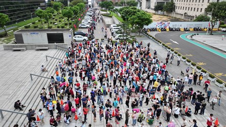 今年國慶升旗同樣在市府廣場舉行,許多民眾起大早攜家帶眷來到會場,手拿著小國旗揮舞,將府前廣場擠得水洩不通。今年市府特別準備實用紀念品「三用照明檯燈」,6時30分開始發放,排隊人龍一路從市府廣場排到市政公園,5000份不到一小時一掃而空。