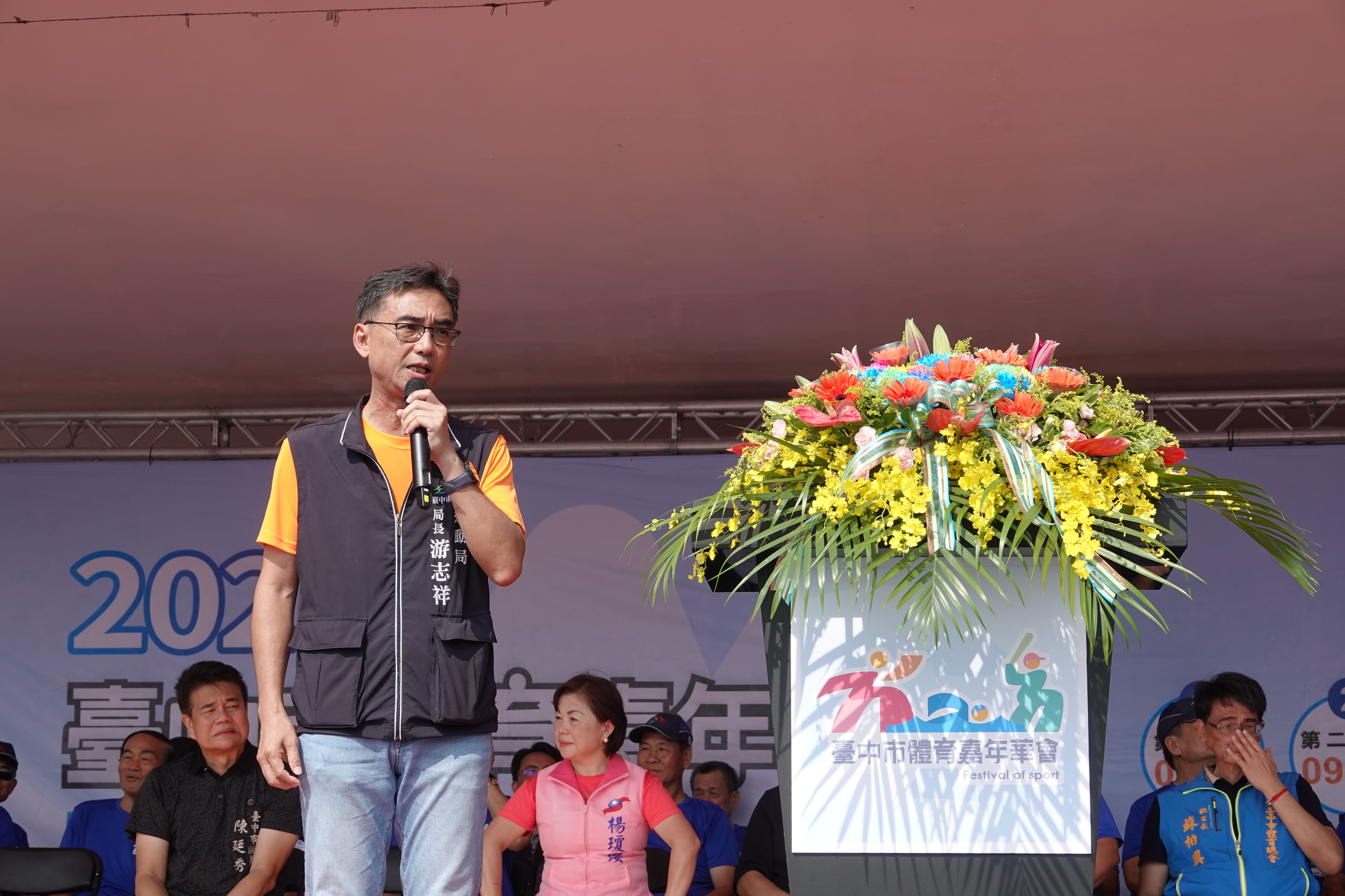 運動局長游志祥代表市長盧秀燕出席開幕典禮,感謝台中市議會議長兼台中市體育總會理事長張清照、及市議員兼台中市體育總會秘書長蘇柏興大力支持,讓全民運動深入社區,走進市民生活。啟動儀式安排「大球啟動」,由各單項委員會齊力滾動大球,象徵團結一心、全民齊心推動體育,也為今年全國運動會即將出征的台中代表隊注入滿滿士氣。