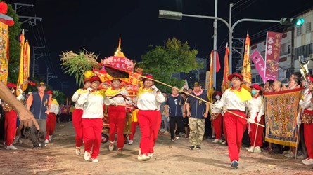 民政局說明,浩天宮昨晚在梧棲文昌路浩天宮牌樓前舉行盛大接駕儀式,中堡五十三庄各宮廟神轎、各式陣頭及上萬民眾前往接駕,媽祖鑾轎抵達,眾人齊喊「進哦,發哦」,恭迎媽祖鑾轎上紅壇安座,眾人團拜祈福,隨後舉行回鑾重頭戲梧棲當地民俗活動「跑大轎比賽」,各宮廟轎班人員向媽祖神轎行禮後,接著抬著神轎來回衝刺,展現活力與耐力,最後恭迎媽祖入廟安座,媽祖神像迎回,代表今年遶境結束,祈盼藉由媽祖繞境出巡,驅除邪煞、保佑台灣、台中平安,為今年的進香活動畫下圓滿句點。