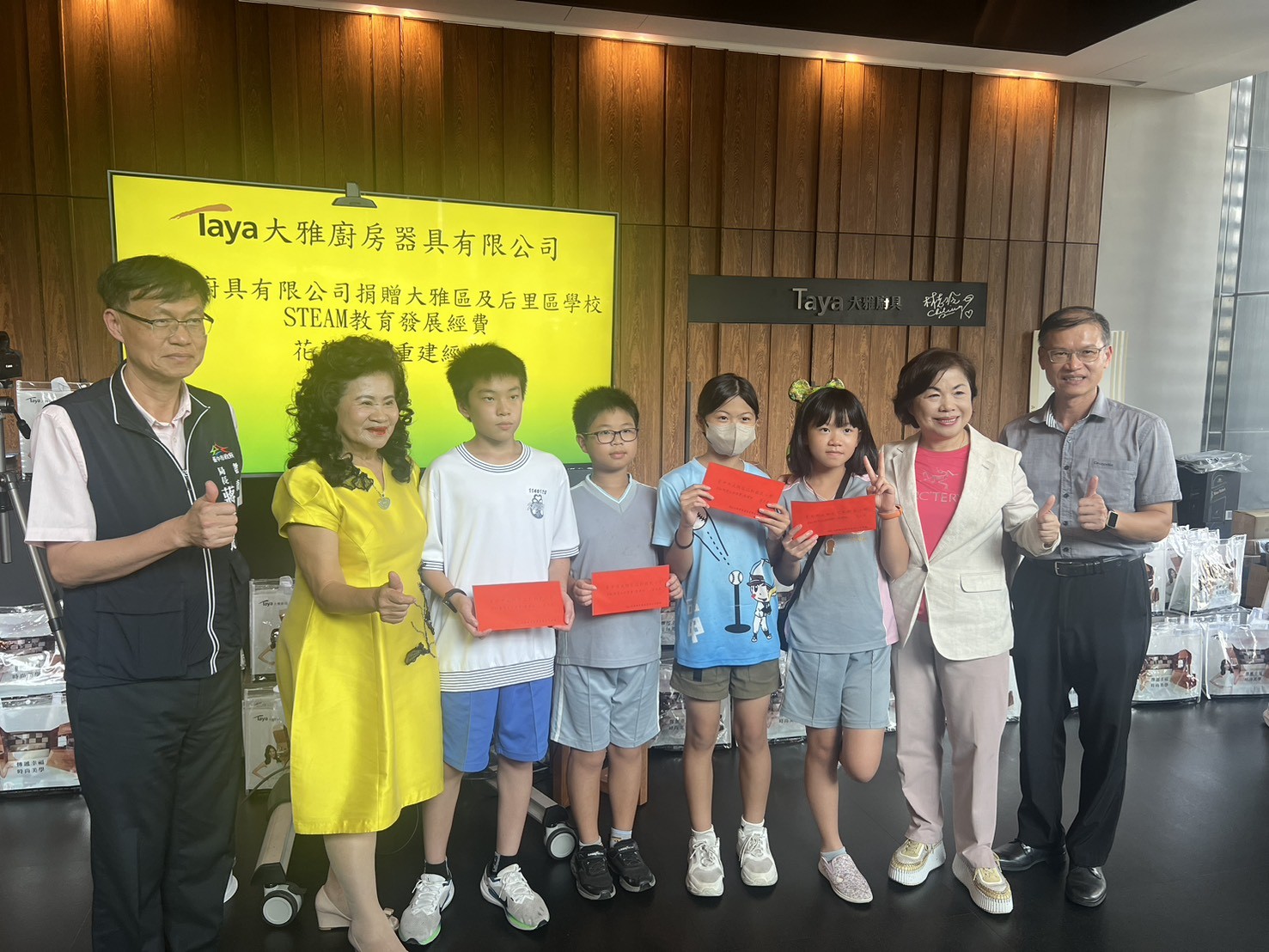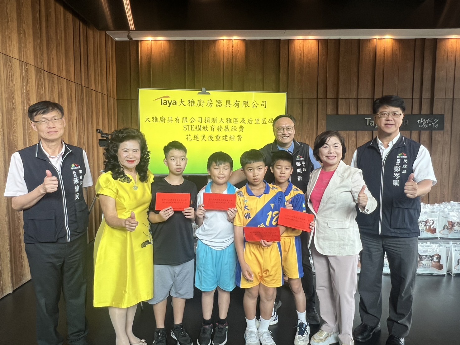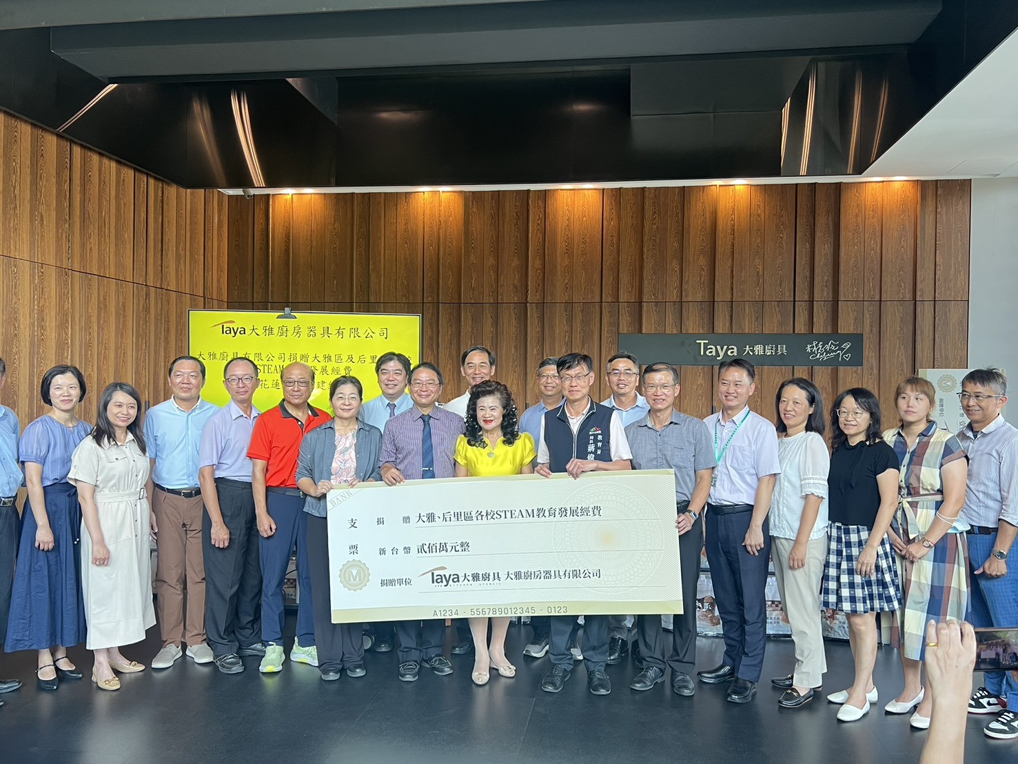 台中市大雅廚房器具有限公司關懷教育,今(14)日於公司展示廳舉行捐贈儀式,捐贈台中市大雅區及后里區共20所國中小學校,每校10萬元,共計200萬,協助學校推動STEAM教育發展課程,副市長鄭照新到場表達誠摯感謝,感佩大雅廚房器具公司董事長張光男及總經理楊素眞熱心回饋地方、長期關懷教育的精神。