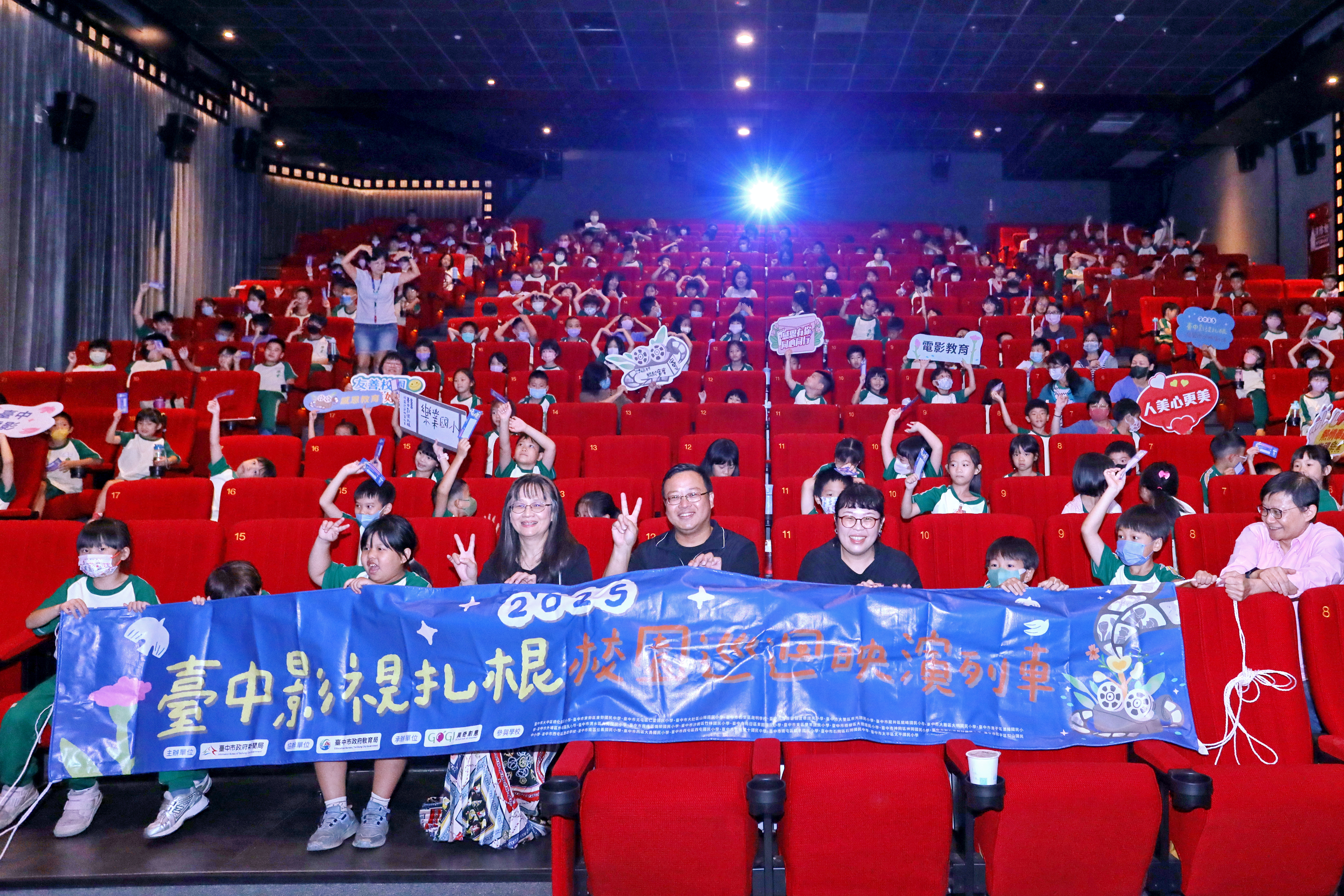 由台中市政府新聞局主辦、教育局協辦的「影視扎根-校園巡迴映演列車」邁入第15年,今(14)日首度開進電影院,在親親戲院迎來樂業國小近百位師生。對許多第一次踏進電影院的孩子來說,這趟旅程不只是觀影,更是一場充滿歡笑與感動的電影冒險。