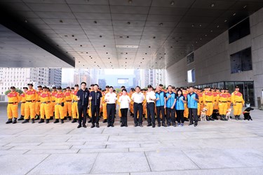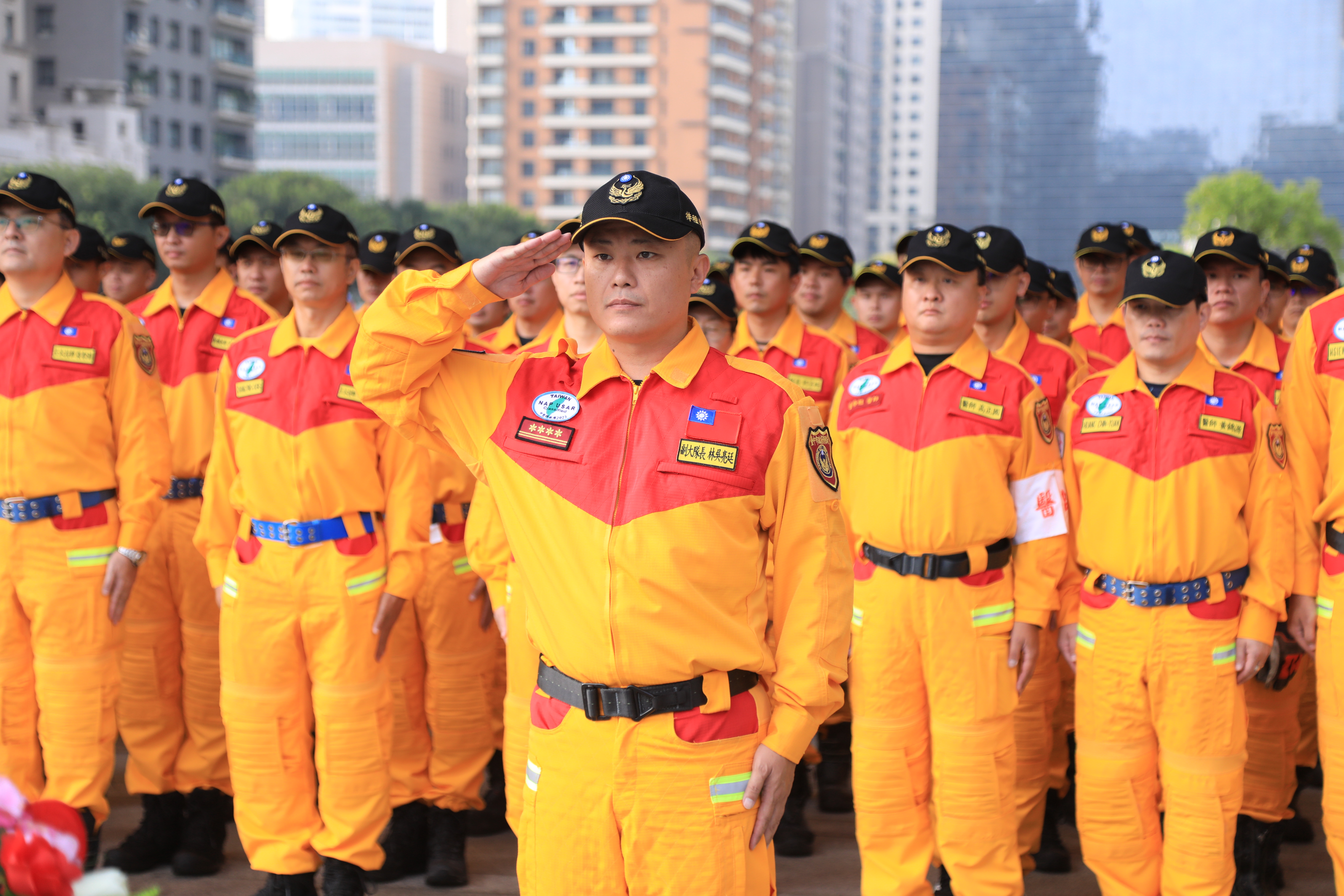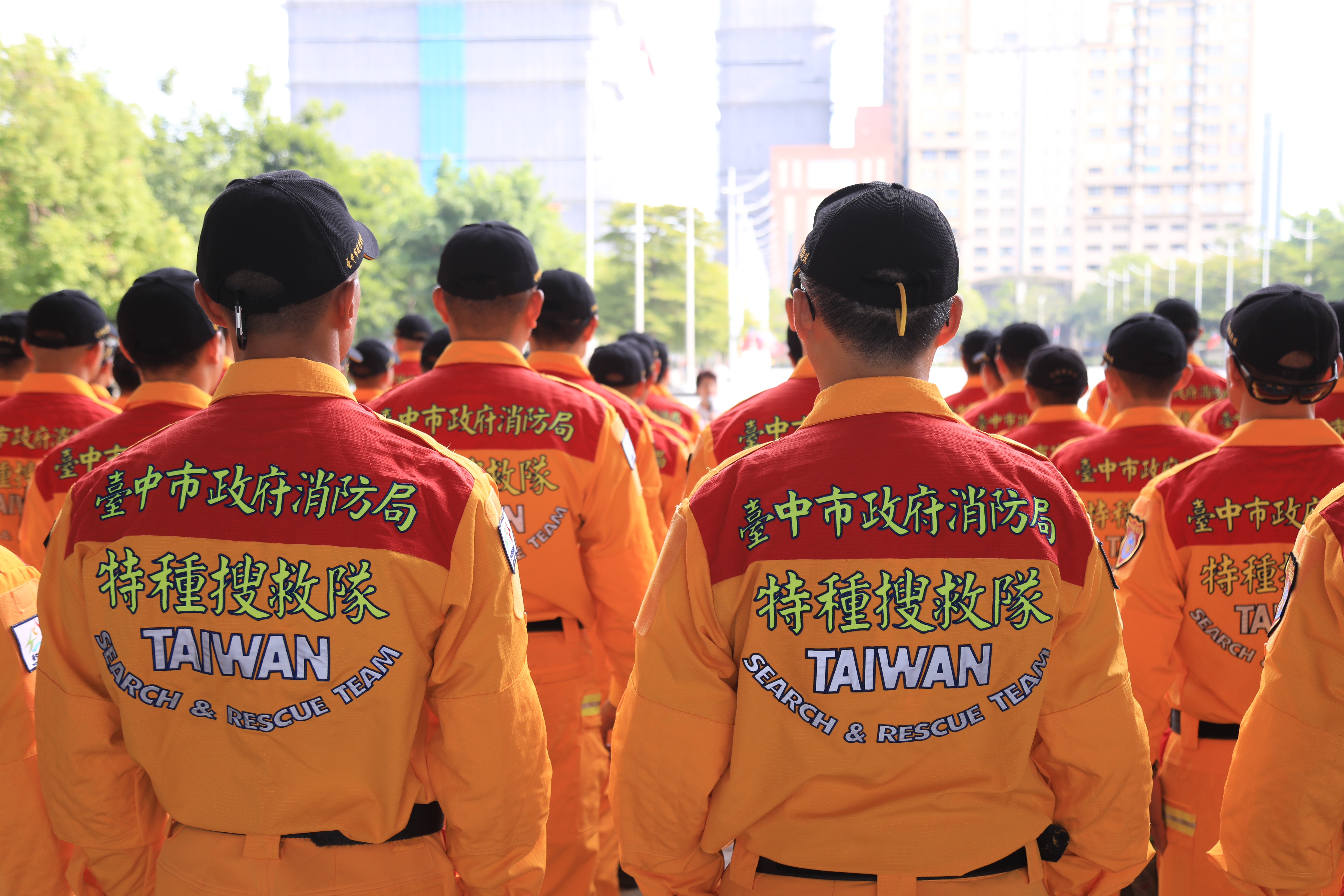 台中市政府今(15)日上午於市政大樓府前廣場舉行「特種搜救隊重型隊伍能力分級檢測授旗儀式」,由市長盧秀燕親自授旗,勉勵全體隊員以最高標準通過重型搜救隊國際評測,展現守護市民安全、馳援國際救援的決心。
