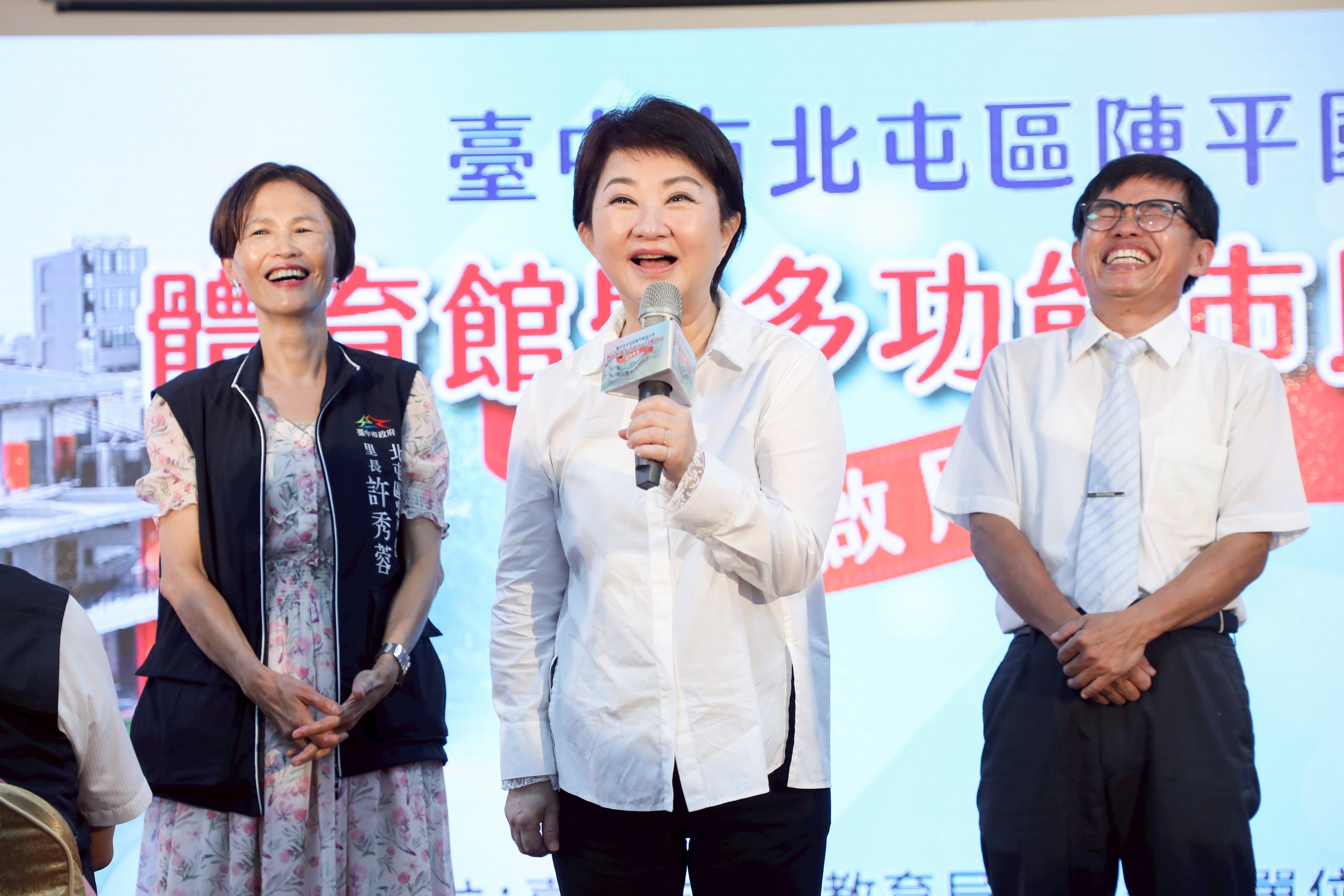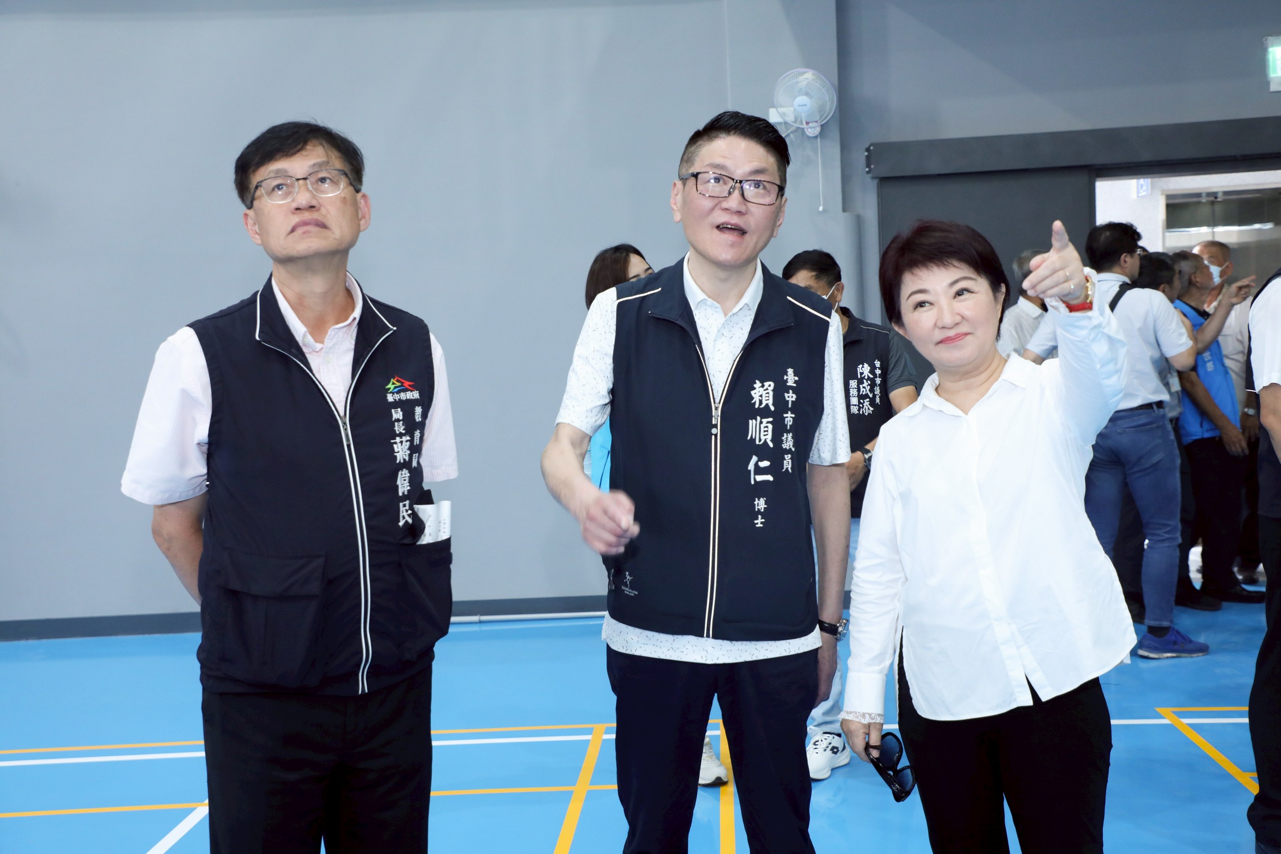 台中市政府全額補助近9,000萬元興建的「陳平國小體育館暨多功能市民活動中心」今(15)日啟用。市長盧秀燕出席揭牌表示,這棟建築不僅補足學校長期缺乏禮堂,也讓忠平、陳平兩里擁有共同的活動據點,是實現校園教育與社區民眾城市共享的雙贏建設。