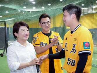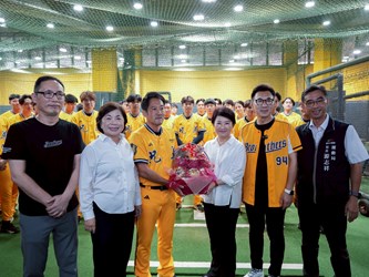 中華職棒36年總冠軍賽即將開打,中信兄弟首戰將於18日在台北大巨蛋迎戰季後挑戰賽的勝隊樂天桃猿隊,市長盧秀燕今(15)日到洲際棒球場力挺在地球隊中信兄弟,鼓勵全體隊員並致贈水果禮盒和能量果凍,為選手們加油打氣。「邁『象』總冠軍,締造二連霸!」,盧市長表示,相信中信兄弟一定會旗開得勝、連戰連捷,將總冠軍獎盃再次抱回台中!