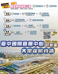 葉局長說明,民眾若搭乘台鐵至台中站,則可轉乘25路公車前往台中國際會展中心,台中市民可直接搭乘市區公車前往,包含8、23、25、82(含延)、88、157(含繞、延)、354、525、529、555、675及綠4(含延)路等多條路線皆可抵達會展中心周邊,台中市民還可享搭公車前10公里免費,超過10公里最多只收10元車資的「雙十公車」福利,市民搭乘大眾運輸工具不僅省荷包也很方便。