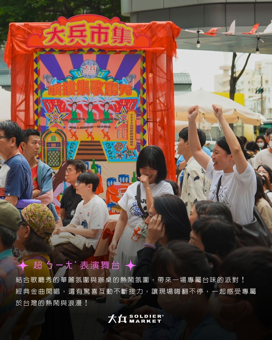 今年的新生社活動以「噗摟集歌廳秀-『蚤市做』Pulo Night Fever」為主題。以古早味派對形式,加入舞台、音樂互動體驗,以及露天電影院放映活動,讓市集有了更嗨更多樣的面貌。除此以外,為了讓市民朋友更能深入了解眷村歷史,用親身體驗留下更多美好回憶。本次設計了走讀活動、眷味美食DIY手作、以及餐廳歌廳秀等多種活動類型,讓你一秒穿越回民國40-60年代!閤家共賞的活動不只可以讓你和朋友一起穿搭美拍、在星空下浪漫看電影,還可以帶小朋友一起撈金魚、套圈圈,更可以和長輩一起到餐廳用餐參加歌廳秀,回味舊時光!