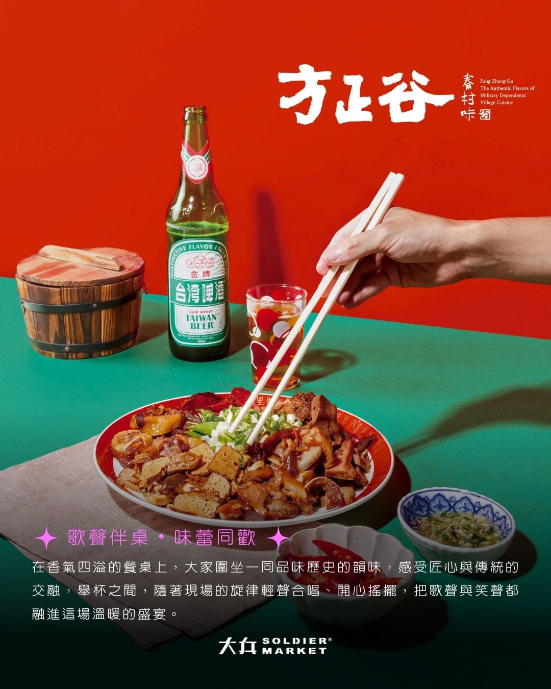 臺中市眷村文物館的前身「北屯新村」曾是空軍眷舍所在地,見證了臺灣空軍及航空技術的發展歷程。目前園區內有著古早味柑仔店、方正谷眷村菜、大方男士理髮廳,同時也正展出「逗陣來呷飯-辦桌文化特展」,融入早年辦桌常見的元素,並設計「人生百宴話滿堂」、「魚躍龍門總鋪師」、「品一席萬年富貴」、「外帶打包」等四大主題,將豐盛桌菜與多元文化融合,成為兼具歷史文化意義並挑動味蕾記憶的美味展覽。本月舉辦的「新生社」文化季活動,則沿用過往空軍眷屬的社交活動名稱,並結合眷村美食、古早味市集等元素,讓民眾感受早期軍眷的生活環境與文化。