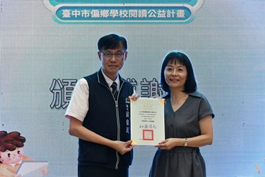 蔣局長說明,市長盧秀燕非常重視閱讀教育,市府致力縮短城鄉教育資源落差,讓每位學生都能享有平等的學習機會。此次公益計畫以「智慧閱讀、希望啟航」為核心理念,在偏鄉小學圖書館設置AI智慧閱讀機,學生可透過自助借還書設備自由借閱,還能依照閱讀程度與興趣提供個人化書單推薦,讓每個孩子都能讀到最適合自己的書,落實因材施教理念。AI智慧閱讀機不僅是設備升級,更象徵教育理念的革新,學生從「要我讀」轉為「我要讀」,學習動能大幅提升;教師也能運用科技輔助進行閱讀引導,展現「人機協作、教學合一」的教育新樣貌。