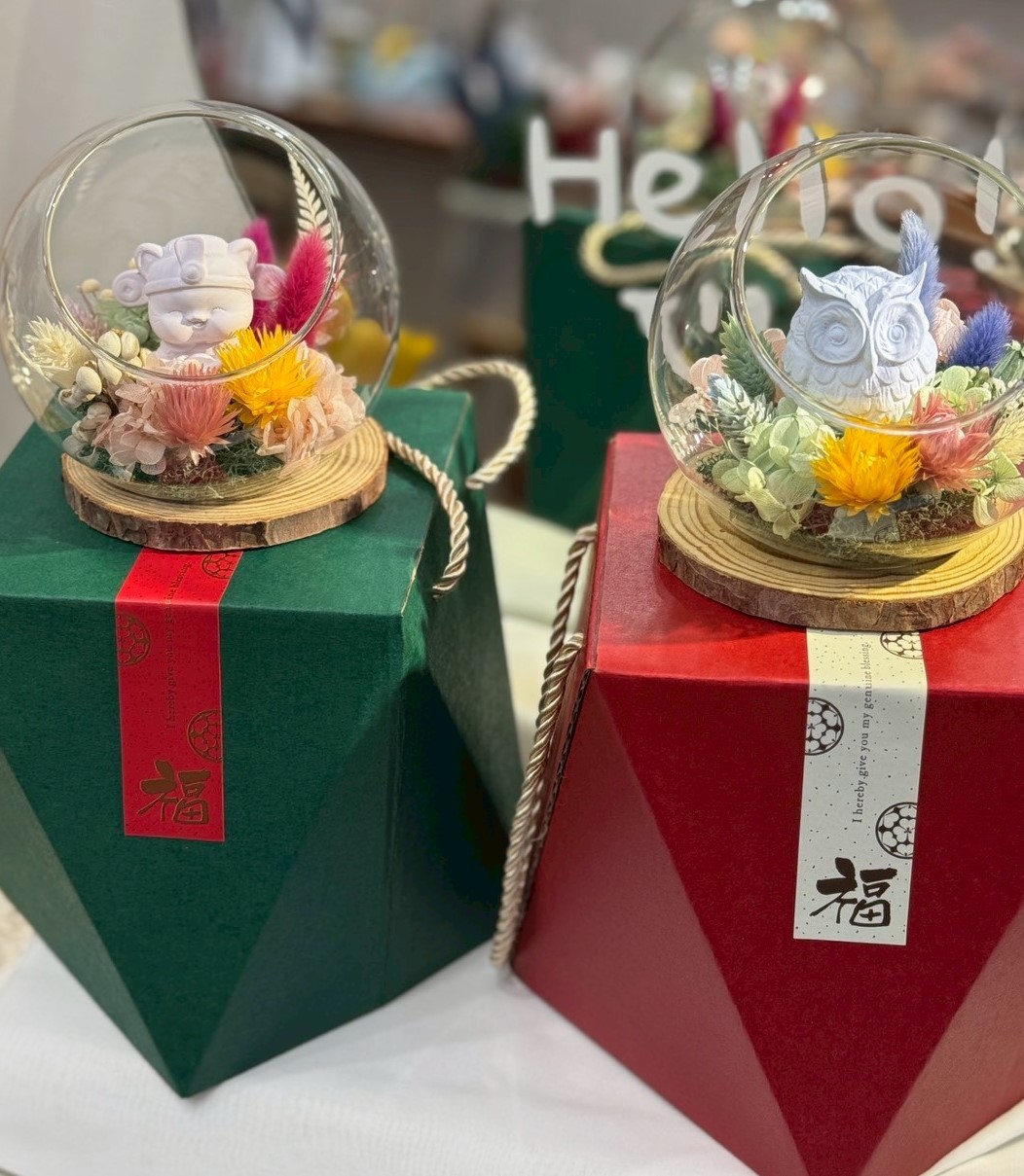 另外,獲得「新創藝」標章商品【口袋雨林工作室】森林別墅生態瓶材料包、【初欣花藝】擴香花藝-發財好運到系列、【茗玥堂】天然草本茶禮盒,這些產品設計皆秉持著療癒現代人忙碌的身心,運用天然的材料傳遞正能量。而【Nazonasum哪做哪盛。積木客製x專売*玩具】台灣文創積木-台灣鐵路公司、【喆洛國際股份有限公司】平安守護披風、【縮像3D真人公仔】客製化真人公仔,提供富繞趣味又充滿在地文化的特色商品,甚至還有客製化服務,讓民眾能打造專屬自己的特色小物。還有【粿好日】《粿好日》品牌禮盒、【松鼠兄妹商店】食刻有匠心碗盤禮盒、【isuz 原住民文創】isuz 翻袋包,都是具有青年的創新與文化巧思,不論是日常或是節慶使用,都能為使用者帶來新的質感與體驗。