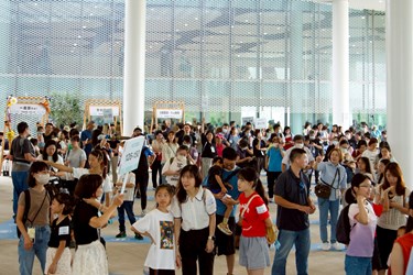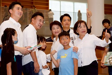 盧市長今日現場也親自參與傳書接力,與市民一同完成上架任務。她並分享好康訊息,為慶祝總圖書館開幕,市府準備限量紀念品,是由建築師妹島和世與西澤立衛設計的「花椅」造型鑰匙圈,並推出限量八萬張「貓貓蟲咖波」閱讀證,目前已申請超過五萬張,歡迎大家把握機會申請,作為紀念這座總圖書館啟用的特別象徵。她同時也感謝文化局與圖書館團隊的努力,及今日近千位市民家庭、志工與學校師生的熱情參與,讓市民共同完成「上架新書」這項充滿意義的文化行動。